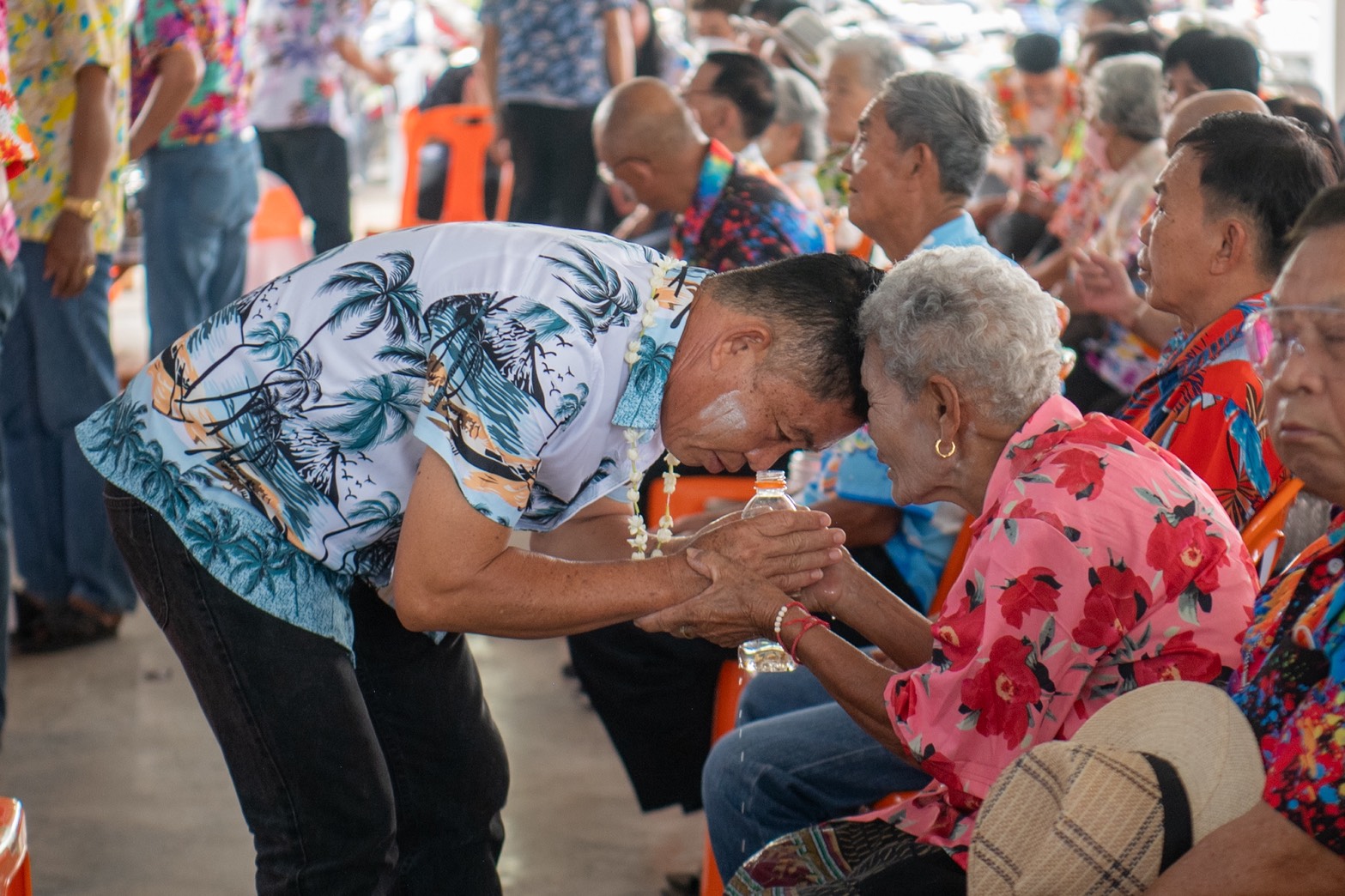 บรรยากาศในช่วงบ่ายเต็มไปด้วยสีสันกับการประกวด “เทพบุตร-เทพธิดาดวงดี” ที่เปิดโอกาสให้ผู้สูงวัยได้แสดงศักยภาพ ความสนุกและความมั่นใจ ซึ่งบรรยากาศเต็มไปด้วยความสนุกสนาน ก่อนจะเข้าสู่พิธีอันศักดิ์สิทธิ์ในการรดน้ำดำหัวขอพรจากผู้ทรงคุณวุฒิในชุมชน ซึ่งเป็นการส่งต่อพลังบวกและความรักจากคนหลายวัยเข้าด้วยกัน กิจกรรมในวันนี้จึงไม่ได้จบลงแค่การมอบของที่ระลึก แต่เป็นการส่งต่อ “ความหวัง” และ “กำลังใจ” ว่ามูลนิธิฯ จะยังคงเคียงข้างเพื่อเติมเต็มสุขให้กับสูงวัยต่อไป