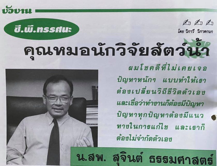 อีกหนึ่งผู้บริหารที่ถือเป็นตำนานการบุกเบิกของซีพีที่ชวนชาวซีพีรับรู้คือ นายสัตวแพทย์สุจินต์ ธรรมศาสตร์ หรือ คุณหมอสุจินต์ ประธานผู้บริหารฝ่ายปฏิบัติการ สายธุรกิจสัตว์น้ำ ซีพีเอฟ