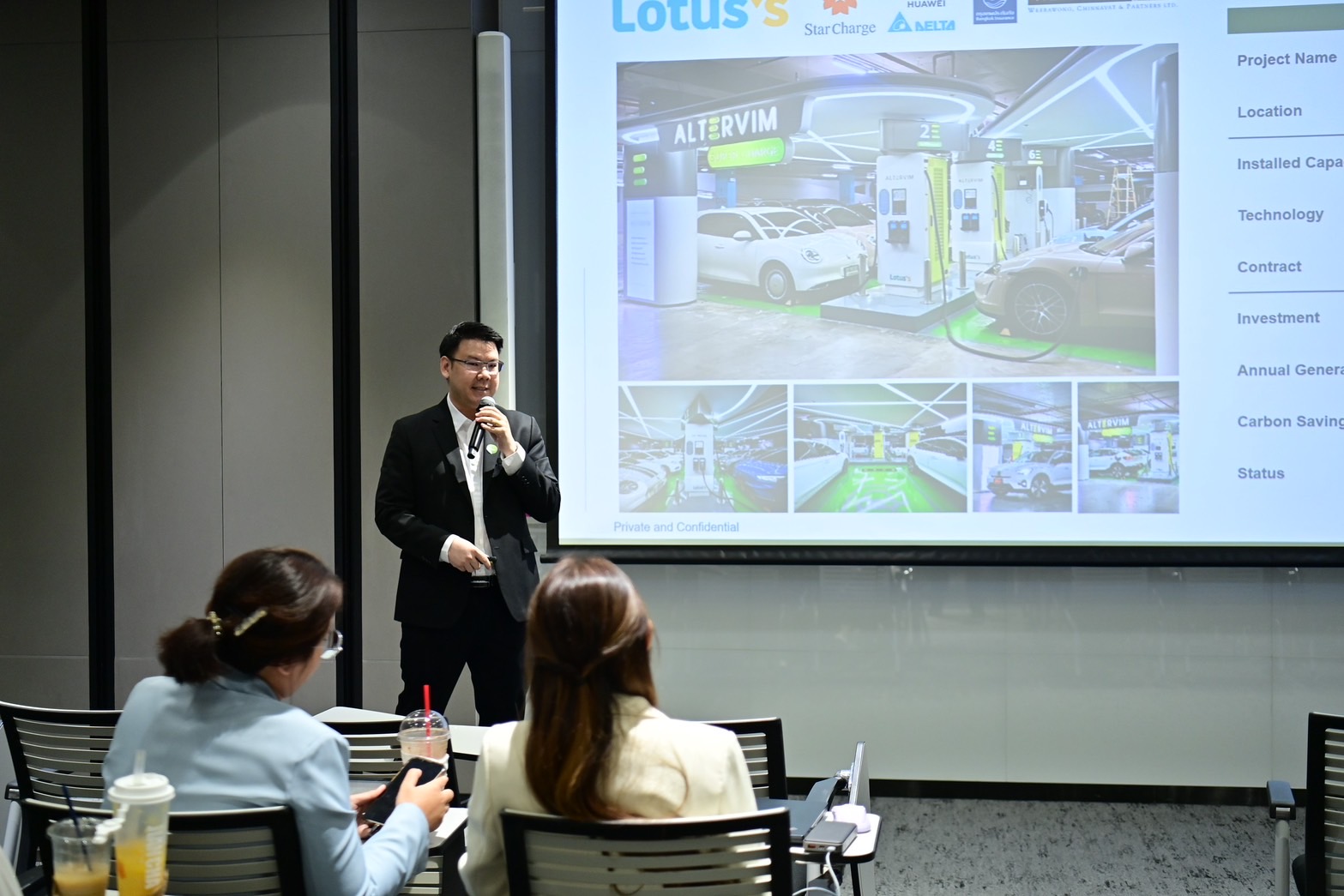 ขณะที่ คุณจักรกฤษณ์ ศิวพรเสถียร จาก บริษัท อัลเทอร์วิม จำกัด ได้นำเสนอเทคโนโลยีที่ช่วยคู่ค้าลดต้นทุนพลังงานและคาร์บอน เช่น Solar Rooftop, Solar Floating, ระบบกักเก็บพลังงาน (BESS) และมอเตอร์ประสิทธิภาพสูง ซึ่งจะช่วยเร่งสู่เป้าหมาย Net Zero อย่างเป็นรูปธรรม