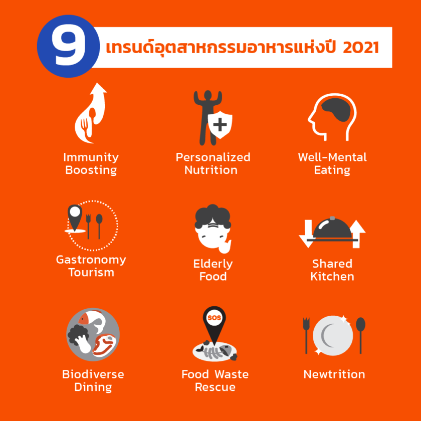 จาก 9 เทรนด์ในข้างต้นจะเห็นได้ว่า ล้วนเป็นเทรนด์ที่เกี่ยวข้องกับ “อาหารเพื่อสุขภาพ” ที่ช่วยป้องกันหรือเยียวยาสุขภาพทั้งทางกายและจิตใจ รวมถึงการตระหนักถึงปัญหาสิ่งแวดล้อมรอบตัว หล่อหลอมให้ผู้บริโภคมีแนวคิดและการใช้ชีวิตที่เปลี่ยนแปลงไป