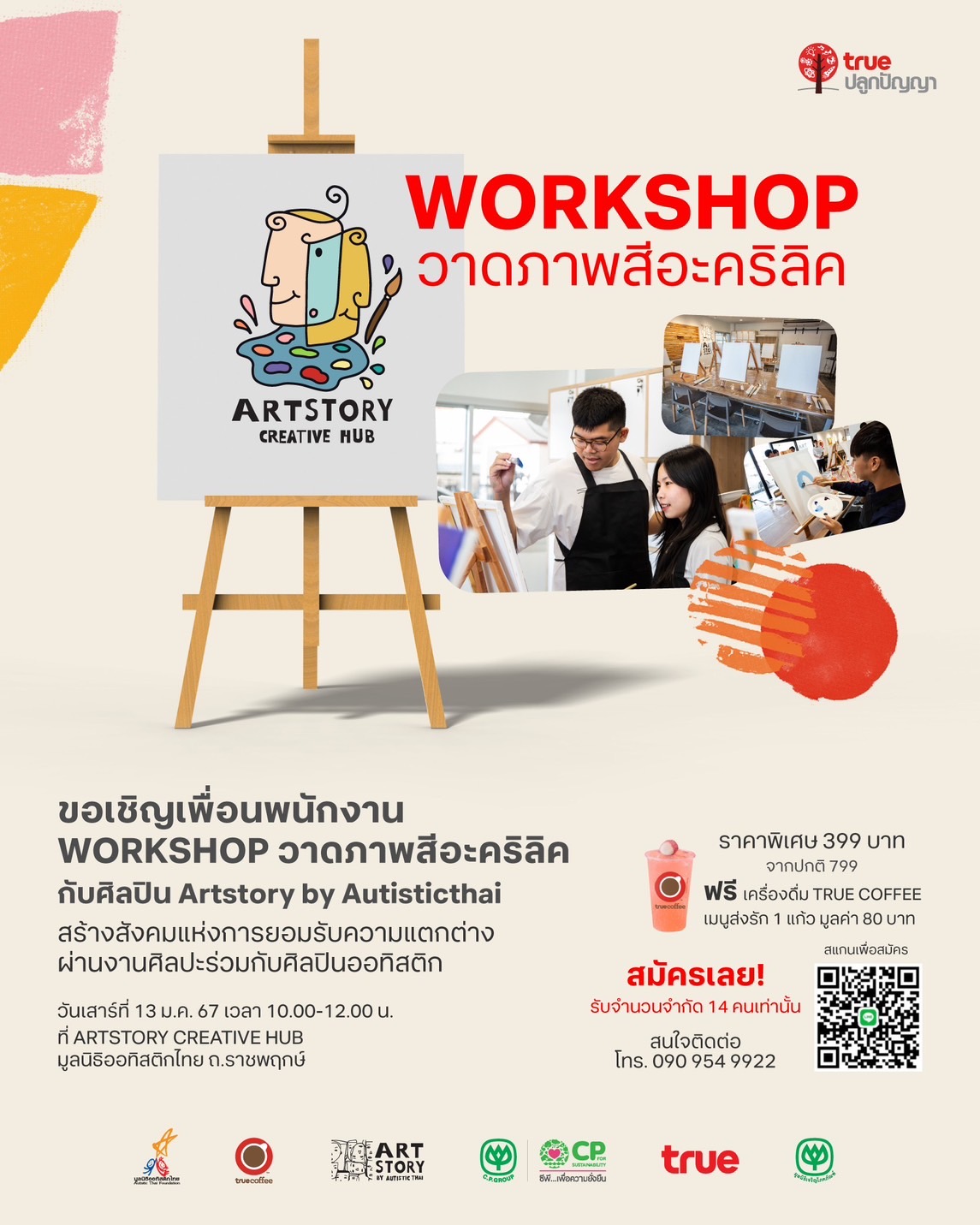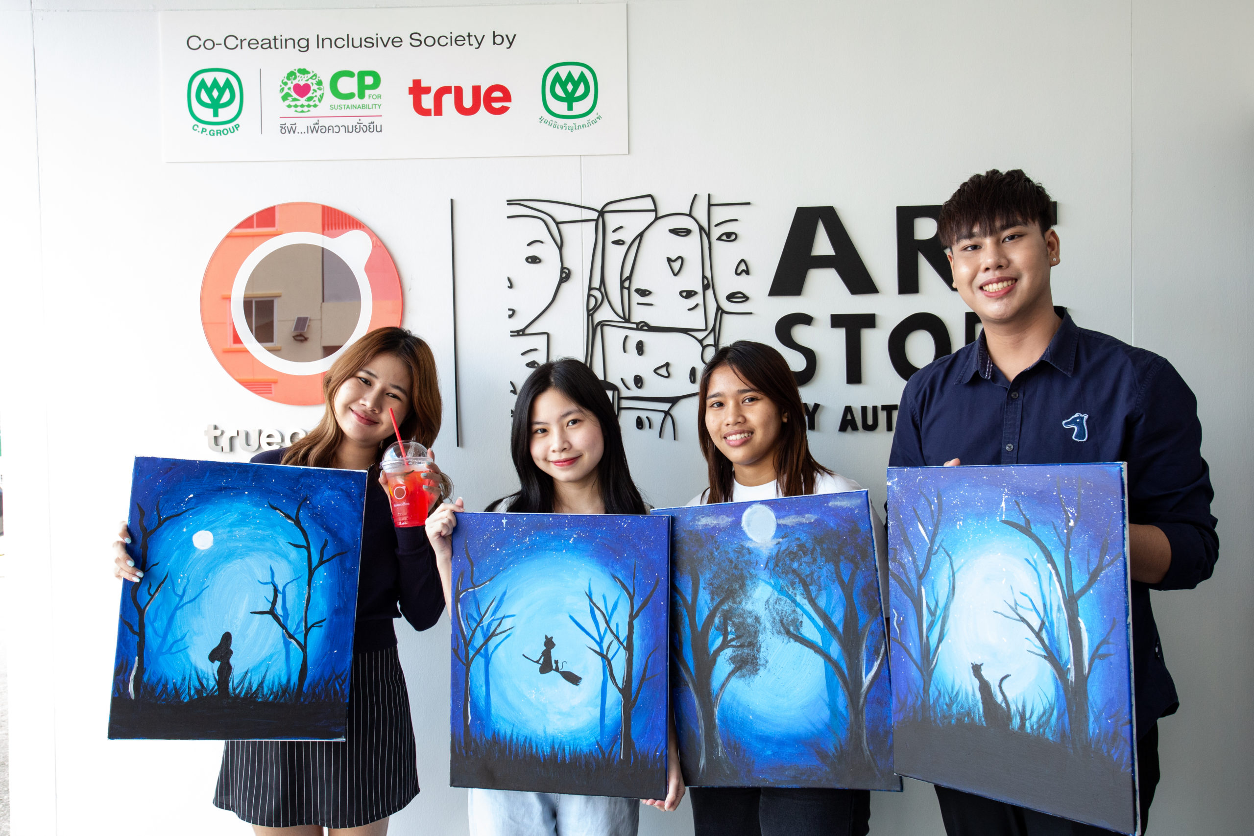 จากศักยภาพดังกล่าว เครือเจริญโภคภัณฑ์ และ ทรู คอร์ปอเรชั่น เล็งเห็นความสำคัญของการพัฒนาทักษะบุคคลออทิสติกอย่างต่อเนื่อง เพื่อให้ก้าวผ่านขีดจำกัดของตนเอง และสามารถใช้ชีวิตร่วมกับบุคคลทั่วไปได้อย่างไร้รอยต่อ จึงร่วมกับมูลนิธิฯ เปิดพื้นที่ “ARTSTORY Creative Hub” ขึ้น ณ มูลนิธิออทิสติกไทย ราชพฤกษ์ โดยมุ่งหวังที่จะให้เป็นพื้นที่ต้นแบบของการสร้างสังคมแห่งความเท่าเทียม และจุดประกายความคิดสร้างสรรค์ ตลอดจนเป็นแหล่งเรียนรู้ ร่วมกันระหว่างบุคคลออทิสติกและบุคคลทั่วไป ภายใต้แนวคิด “Co-Creating Inclusive Society” ผ่านการทำกิจกรรมทางศิลปะร่วมกัน โดยมีศิลปินออทิสติกร่วมเป็นวิทยากรถ่ายทอดเทคนิคและทักษะทางศิลปะ พร้อมกับเติมพลังใจให้แก่ทุกคนอย่างมืออาชีพ ซึ่งกระบวนการดังกล่าวจะช่วยสร้างความเข้าใจ ตวามตระหนักรู้และการยอมรับศักยภาพของบุคคลออทิสติกในเชิงประจักษ์และเป็นรูปธรรม