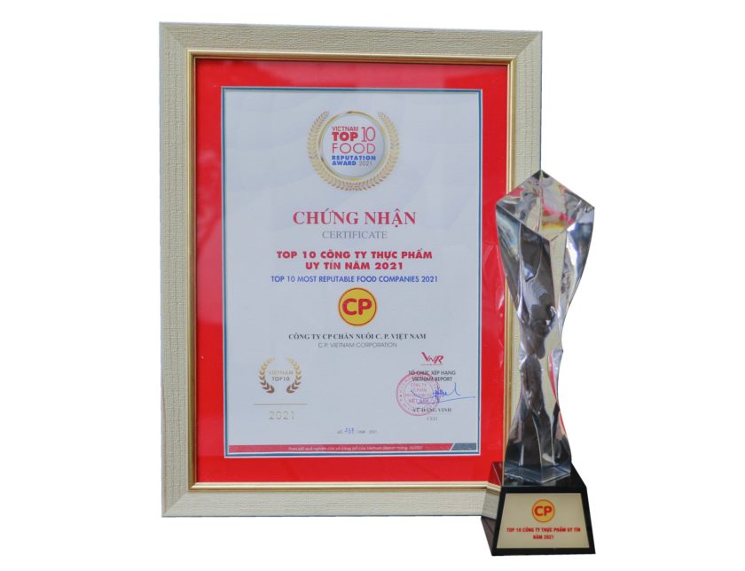 ซี.พี.เวียดนาม คอร์ปอเรชั่น จำกัด หรือซี.พี. เวียดนาม ครองใจผู้บริโภคชาวเวียดนาม ในด้านการผลิตอาหารคุณภาพ สะอาด ปลอดภัย น่าเชื่อถือและมีภาพลักษณ์ที่ดี จนได้รับรางวัลอันดับ 1 ในกลุ่มอาหารแช่แข็ง เป็นปีที่ 2 ติดต่อกัน จาก Vietnam Top 10 Food Reputation Award 2021 นอกจากนี้ บริษัทฯ ยังติดอันดับ 1 ใน 10 ของ Vietnam Top 10 Food Reputation Award 2021 มาอย่างต่อเนื่องเป็นปีที่ 5