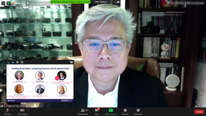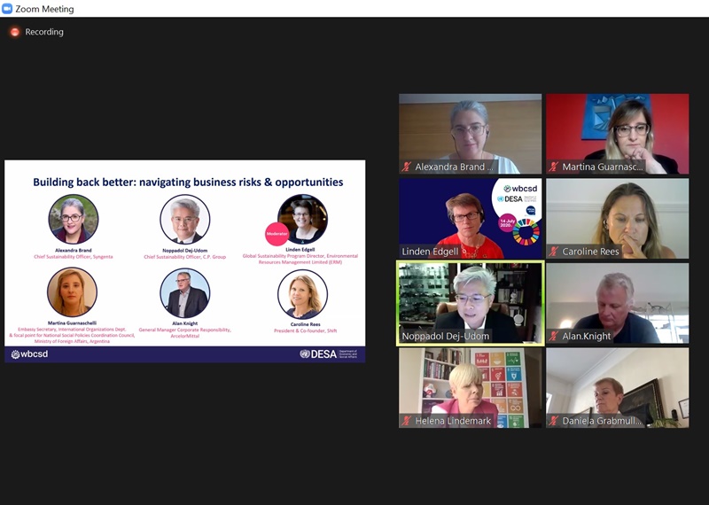 ผู้บริหารด้านความยั่งยืนเครือซีพี ตอกย้ำภารกิจท้าทายท่ามกลางวิกฤตโควิด บนเวทีระดับโลก WBCSD ชูจุดยืนองค์กร “การจ้างงานต่อเนื่อง – ความมั่นคงทางอาหาร – การสร้างสุขภาวะที่ดี” ด้านองค์กรสิทธิมนุษยชนต่างประเทศชื่นชมเครือซีพีมีกระบวนการจัดการมุ่งรักษางานให้พนักงานอย่างจริงจังและเป็นรูปธรรม