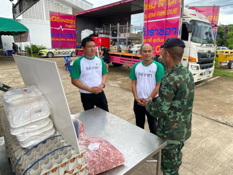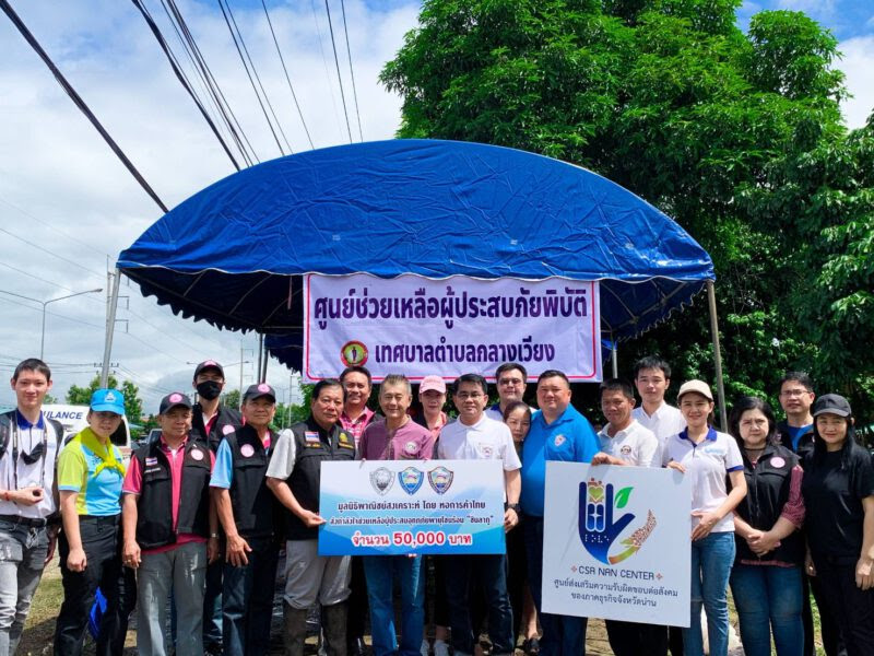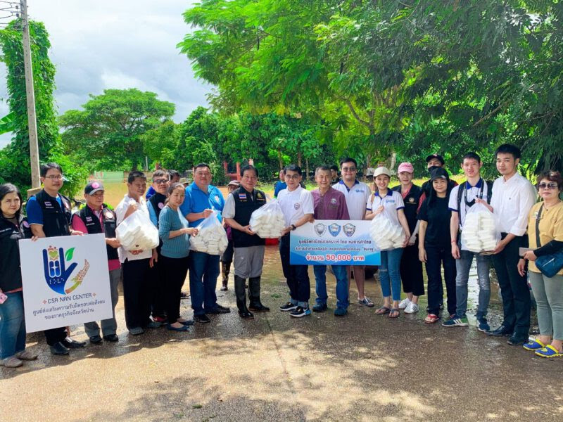 ในครั้งนี้กลุ่มเครือข่ายสื่อมวลชน จังหวัดน่าน ร่วมกับ คุณบัญชา โชติกำจร ผอ.สำนักงานด้านความยั่งยืนและพัฒนาชุมชน เครือเจริญโภคภัณฑ์ จังหวัดน่าน และคุณอรรถวิทย์ ยุทธยศ ผู้จัดการทั่วไป ด้านพัฒนาความยั่งยืนภาครัฐ นำทีมซีพีอาสา จับมือหน่วยงานภาครัฐ ภาคเอกชน ลงพื้นที่ให้ความช่วยเหลือประชาชน และภาคีเครือข่าย ที่ได้รับผลกระทบจากภัยน้ำท่วมและน้ำป่าไหลหลาก ในพื้นที่ อำเภอเวียงสา เพื่อบรรเทาความเดือดร้อน และเป็นขวัญกำลังใจให้กับประชาชนในพื้นที่ทางเครือฯได้มอบวัตถุดิบสำหรับประกอบอาหาร ได้แก่ ไข่ไก่ ข้าวสาร อาหารเเห้ง ให้กับโรงครัวกองทัพเพื่อประชาชน ม.พัน 15, โรงครัวมูลนิธิเพชรเกษม-เพจอีจัน, เพจเสน่ห์น่านวันนี้ และเพจบ้านฮาอยู่น่าน รวมถึงน้ำดื่มสะอาดให้กับศูนย์ช่วยเหลือภัยพิบัติ อำเภอเวียงสา, เทศบาลเมืองน่าน, สมาคมสื่อมวลชนภาคเหนือ, กอ.รมน.จังหวัดน่าน เเละกลุ่มเครือข่ายสื่อมวลชน เพื่อบรรเทาความเดือดร้อนและเป็นกำลังใจให้กับพี่น้องประชาชนต่อไป