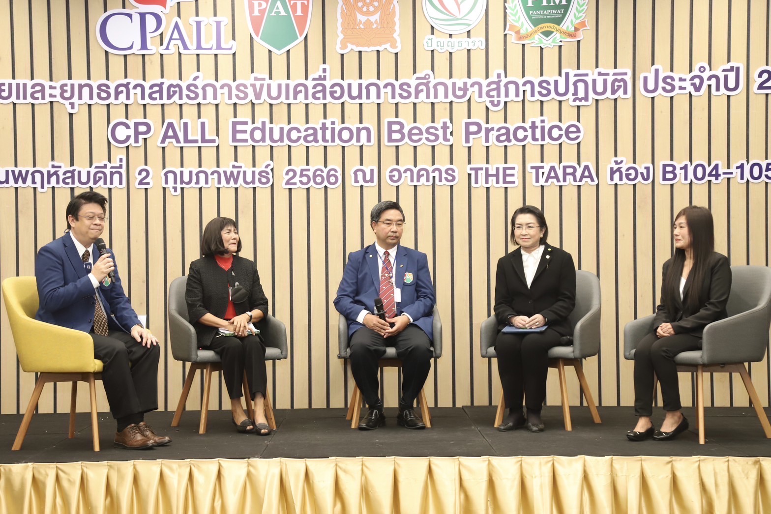 2 กุมภาพันธ์ 2566 บริษัท ซีพี ออลล์ จำกัด (มหาชน) ร่วมกับกระทรวงศึกษาธิการ วิทยาลัยเทคโนโลยีปัญญาภิวัฒน์ (PAT) สถาบันการจัดการปัญญาภิวัฒน์ (PIM) และบริษัทปัญญธารา จำกัด จัดงานสร้างการรับรู้นโยบายและยุทธศาสตร์การขับเคลื่อนการศึกษาสู่การปฏิบัติ ประจำปี 2566 CP ALL Education Best Practice ได้รับเกียรติจาก ดร.อรรถพล สังขวาสี ปลัดกระทรวงศึกษาธิการ เป็นประธานเปิดงาน พร้อมแสดงทัศนะ นโยบายและยุทธศาสตร์การขับเคลื่อนการศึกษาสู่การปฏิบัติ ประจำปี 2566 โดยมีคุณปิยะวัฒน์ ฐิตะสัทธาวรกุล รองประธานกรรมการบริหาร บริษัท ซีพี ออลล์ จำกัด (มหาชน) กล่าวต้อนรับคณะผู้บริหารและกล่าวถึงการดำเนินการจัดการศึกษาของบริษัทฯ ในการสนับสนุนและผลักดันการศึกษาภาคเอกชน มุ่งเน้นสนองนโยบายภาครัฐในการพัฒนาคน พร้อมกันนี้ได้รับเกียรติจากนายวิเชียร เนียมน้อม ผู้แทนผู้รับใบอนุญาตและผู้อำนวยการวิทยาลัยเทคโนโลยีปัญญาภิวัฒน์ , คุณจิตรา นิลพงษ์ ที่ปรึกษาด้านการศึกษา สำนักประสานรัฐกิจ , คุณอรวรรณ ไชยมาตย์ ผู้ช่วยกรรมการผู้จัดการศูนย์ HR Operation 1 , คุณสุชีรา สัจจะนรพันธ์ ผู้ช่วยผู้จัดการทั่วไปด้านฝึกอบรมปฏิบัติการ 3 บริษัทปัญญธารา จำกัด และนายวัชระ เกษสาลี ผู้อำนวยการสำนักพัฒนาธุรกิจ วิทยาลัยเทคโนโลยีปัญญาภิวัฒน์ ร่วมเสวนาเจาะลึก CP ALL Model Best Practice เพื่อเป็นประโยชน์ในการพัฒนา ต่อยอด และขับเคลื่อนการดำเนินงานพัฒนาการศึกษาสู่การปฏิบัติในพื้นที่การศึกษาระดับภาคและระดับจังหวัดผ่านเครือข่ายเอกชนไปสู่การพัฒนาระดับประเทศ โดยมีศึกษาธิการภาค 18 ภาค , ศึกษาธิการจังหวัด 77 จังหวัด และผู้แทนจากสถานศึกษา หน่วยงานราชการกระทรวงศึกษาธิการทั่วประเทศ เข้าร่วมงาน ณ อาคาร The Tara ถนนแจ้งวัฒนะ