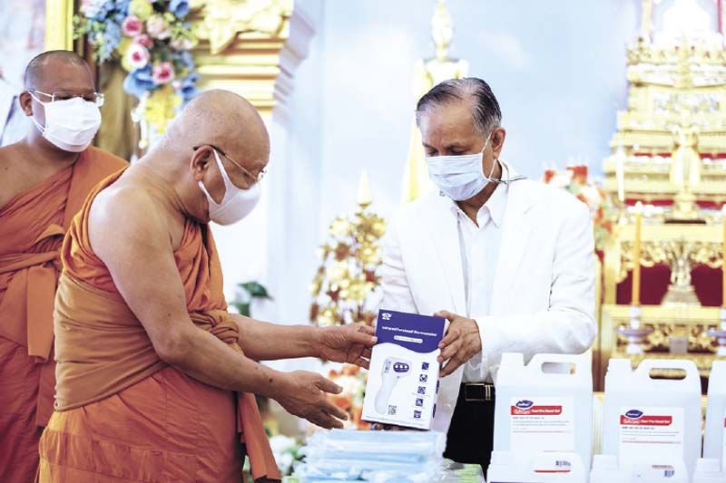 นอกจากนี้ยังได้ส่งมอบสิ่งของที่จำเป็นเพื่อแบ่งเบาภาระค่าใช้จ่ายและป้องกันการแพร่ระบาดของเชื้อไวรัสโควิด-19 ให้กับภาคประชาสังคมและกลุ่มเปราะบาง อาทิ โรงเรียนบ้านเด็กรามอินทรา-บ้านเด็กตาบอดผู้พิการซ้ำซ้อน และชมรมอาสาสมัครสาธารณสุข ศูนย์ 45 เป็นต้น รวมถึงได้ประสานความร่วมมือผ่านทางคณะกรรมการมหาเถรสมาคมน้อมถวายเครื่องวัดอุณหภูมิ แอลกอฮอล์เจลพร้อมน้ำดื่มสะอาดให้กับ ศาสตราจารย์ ดร. พระพรหมบัณฑิต เจ้าอาวาสวัดประยุรวงศาวาสวรวิหาร, กรรมการมหาเถรสมาคมและ ท่านเจ้าประคุณสมเด็จพระมหาธีราจารย์ เจ้าอาวาสวัดยานนาวา, กรรมการมหาเถรสมาคม เพื่อนำไปแจกจ่ายมอบให้กับวัด พระสงฆ์ สามเณร ทั้งส่วนกลางและภูมิภาคต่อไป