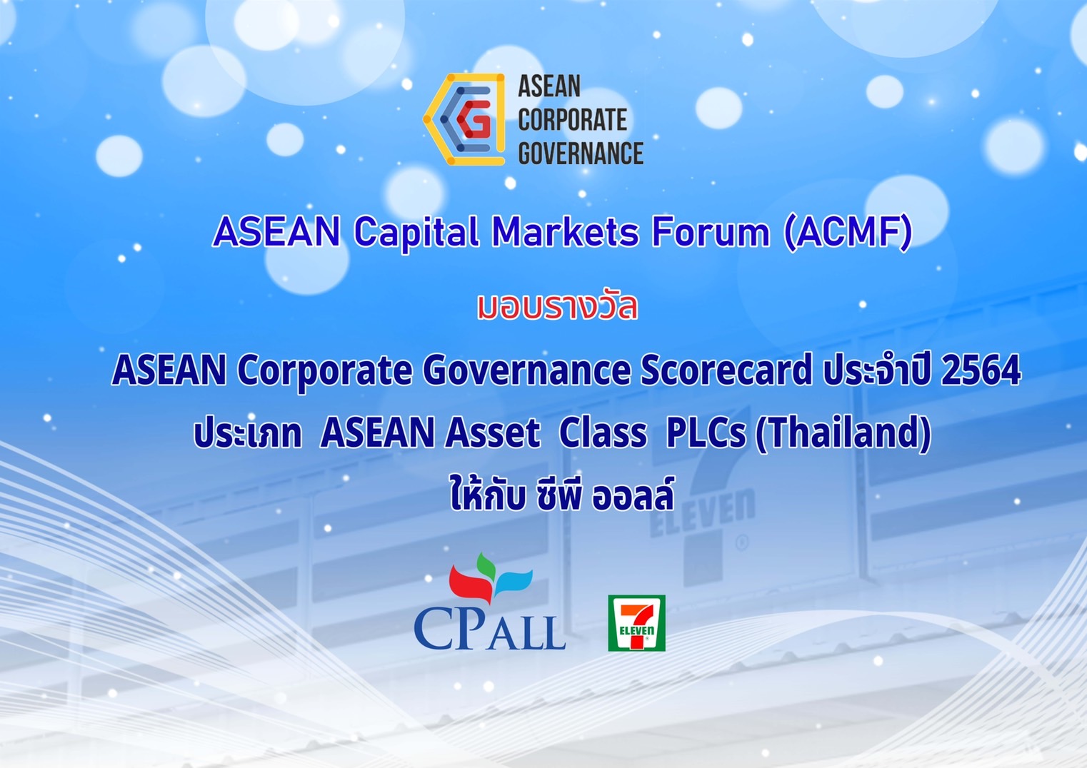 สำหรับรางวัล ASEAN Corporate Governance Scorecard มาจากการที่ ASEAN Capital Markets Forum (ACMF) ซึ่งเป็นการรวมตัวกันของคณะทำงานด้านการกำกับดูแลตลาดทุนในภูมิภาคเอเชียตะวันออกเฉียงใต้ ก่อตั้งเมื่อปี 2547 ภายใต้การดูแลของรัฐมนตรีคลังอาเซียน ได้ออกหลักเกณฑ์การสำรวจการกำกับดูแลกิจการบริษัทจดทะเบียนภูมิภาคอาเซียน (ASEAN Corporate Governance Scorecard หรือ ACGS) เพื่อใช้ประเมิน และจัดอันดับบรรษัทภิบาลของบริษัทจดทะเบียนในกลุ่มประเทศอาเซียน 6 ประเทศได้แก่ อินโดนีเซีย มาเลเซีย ฟิลิปปินส์ สิงคโปร์ ไทย และเวียดนาม เพื่อสนับสนุนให้บริษัทจดทะเบียนเห็นความสำคัญของการปฏิบัติตามหลักบรรษัทภิบาล และผู้ลงทุนมีข้อมูลประกอบการตัดสินใจลงทุน โดยมีการประเมินทุกๆ 2 ปี และในการประเมินครั้งล่าสุดในปี 2564 ซึ่งใช้ข้อมูลในปี 2563 นั้นประเทศไทยมีบริษัทจดทะเบียนที่ได้รับรางวัลในประเภท ASEAN Asset Class PLCs มากที่สุดในอาเซียน จำนวนทั้งสิ้น 76 จาก 234 บริษัท