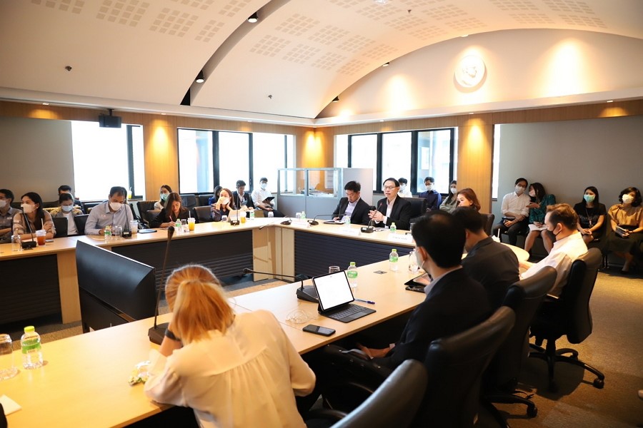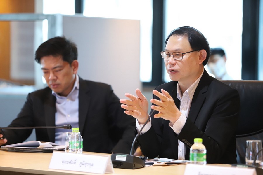 คุณยุทธศักดิ์ ภูมิสุรกุล (กลาง) ประธานเจ้าหน้าที่บริหาร บมจ.ซีพี ออลล์ ผู้บริหารเซเว่น อีเลฟเว่น และ เซเว่น เดลิเวอรี่ เป็นประธานการประชุม CP ALL: Analysts’ Meeting – FY2022 เพื่อรายงานผลประกอบการของบริษัทและบริษัทในกลุ่มบมจ.ซีพี ออลล์ ประจำปี 2565 และทิศทางการดำเนินงานในปี 2566 ให้กับนักวิเคราะห์หลักทรัพย์และผู้จัดการกองทุน โดยมีนายเกรียงชัย บุญโพธิ์อภิชาติ (ที่ 5 จากซ้าย) ประธานเจ้าหน้าที่บริหารด้านการเงิน บมจ. ซีพี ออลล์ พร้อมด้วยคณะผู้บริหารร่วมให้ข้อมูลการดำเนินธุรกิจ ตามหลักธรรมาภิบาล ณ อาคารธาราสาทร เมื่อเร็วๆ นี้