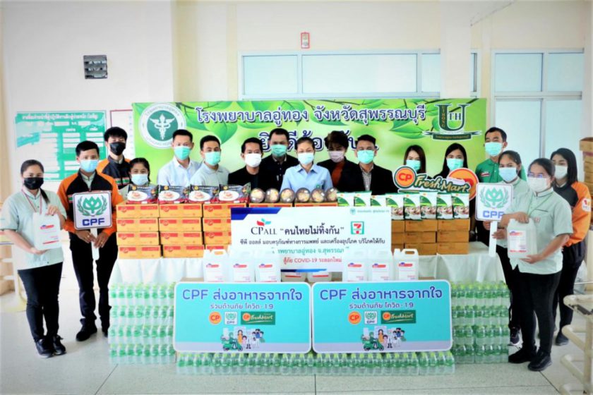 บริษัท เจริญโภคภัณฑ์อาหาร จำกัด (มหาชน) หรือซีพีเอฟ และ บริษัท ซีพี ออลล์ จำกัด (มหาชน) ร่วมกันมอบอาหารและครุภัณฑ์ทางการแพทย์สนับสนุนแพทย์ พยาบาล และบุคลาการทางการแพทย์ 3 โรงพยาบาล ในจังหวัดสุพรรณบุรี ภายใต้โครงการ “CPF ส่งอาหารจากใจ ร่วมต้านภัยโควิด-19” และ โครงการ “คนไทยไม่ทิ้งกัน” อย่างต่อเนื่อง ตามนโยบายเครือเจริญโภคภัณฑ์ ภายใต้โครงการ “ซีพี ร้อยเรียงใจ สู้ภัยโควิด-19”