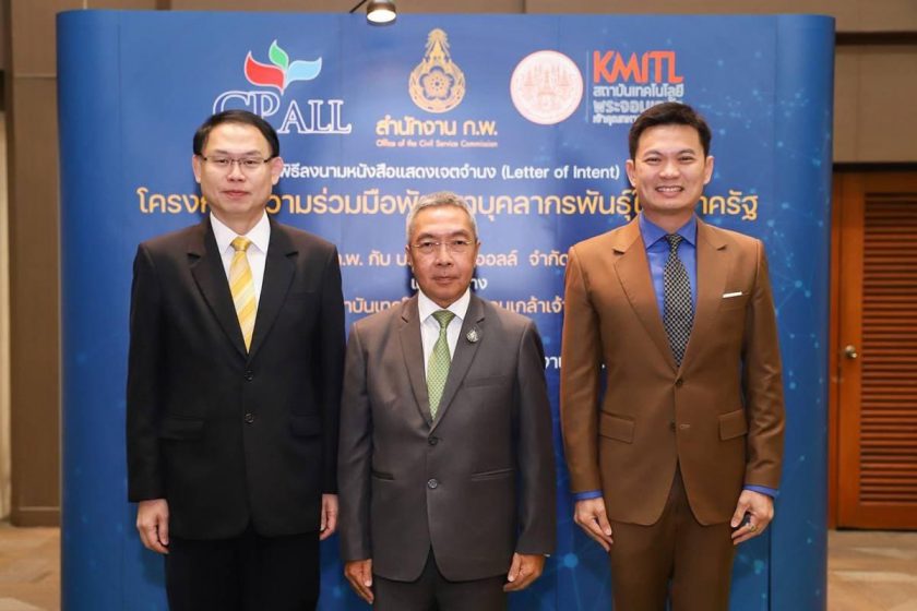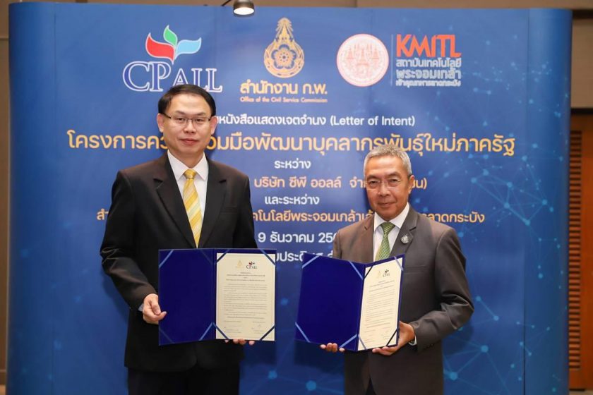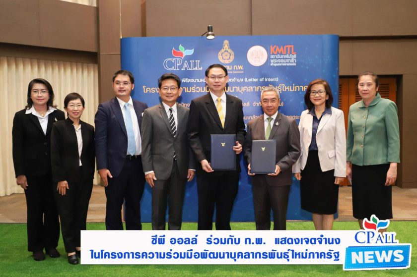 ซีพี ออลล์ โดยคุณยุทธศักดิ์ ภูมิสุรกุล กรรมการผู้จัดการ(ร่วม) ร่วมลงนามหนังสือแสดงเจตจำนง (Letter of Intent) โครงการความร่วมมือพัฒนาบุคลากรพันธุ์ใหม่ภาครัฐ กับสํานักงานคณะกรรมการข้าราชการพลเรือน (ก.พ.) โดยมีหม่อมหลวงพัชรภากร เทวกุล เลขาธิการ ก.พ. และสำนักงาน ก.พ. กับสถาบันเทคโนโลยีพระจอมเกล้าเจ้าคุณทหารลาดกระบัง โดยศาสตราจารย์ ดร.สุชัชวีร์ สุวรรณสวัสดิ์ อธิการบดี สถาบันเทคโนโลยีพระจอมเกล้าเจ้าคุณทหารลาดกระบัง ร่วมลงนาม ณ หอประชุม สุขุมนัยประดิษฐ สำนักงาน ก.พ.