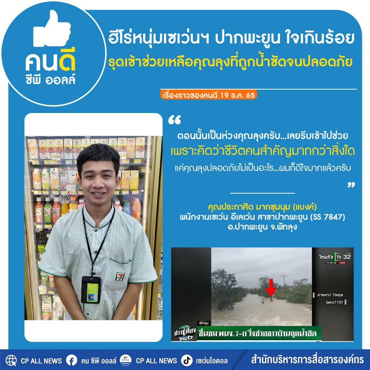 คนดีซีพีออลล์ ฮีโร่หนุ่มเซเว่นฯ ปากพะยูน ใจเกินร้อย เข้าช่วยเหลือคุณลุงที่ถูกน้ำซัดจนปลอดภัย