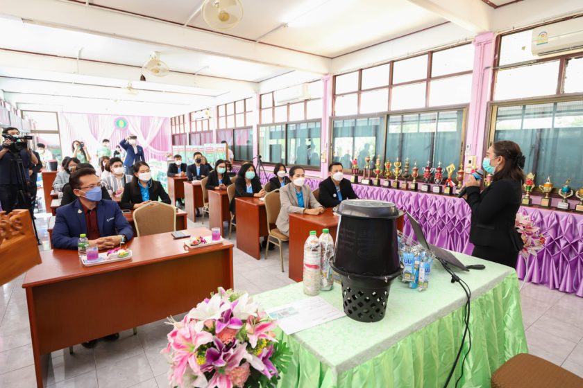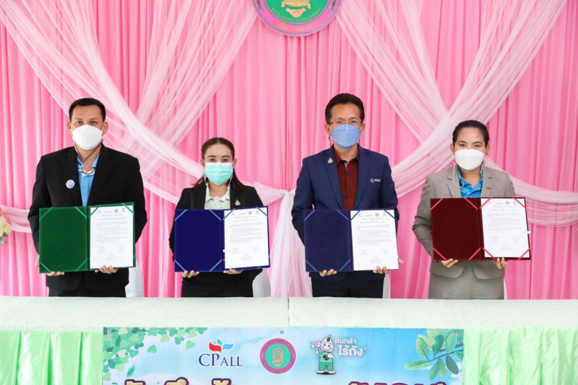 คุณมรัชนก บุญภารดี ผู้อำนวยการโรงเรียนวัดนาคู(จันทศึกษาคาร) ร่วมกับ คุณตรีเทพ ปาลกะวงศ์ ณ อยุธยา ประธานคณะทำงานโครงการ สานอนาคตการศึกษา CONNEXT ED บมจ.ซีพี ออลล์ ผู้บริหารร้านเซเว่น อีเลฟเว่น และเซเว่น เดลิเวอรี่ พร้อมด้วย คุณเทวฤทธิ์ ดีสุบิน ผู้อำนวยการโรงเรียนวัดจระเข้ใหญ่ และ คุณเบญญาภา เชื้อเล็ก ผู้อำนวยการโรงเรียนวัดสาลี ร่วมลงนามบันทึกข้อตกลงภาคีเครือข่าย (MOU) “ต้นกล้าไร้ถัง” หนึ่งในโครงการต้นแบบในโครงการสานอนาคตการศึกษา CONNEXT ED ภายใต้การดูแลของ ซีพี ออลล์ เพื่อจัดการขยะภายในโรงเรียนและชุมชนอย่างเป็นรูปธรรม