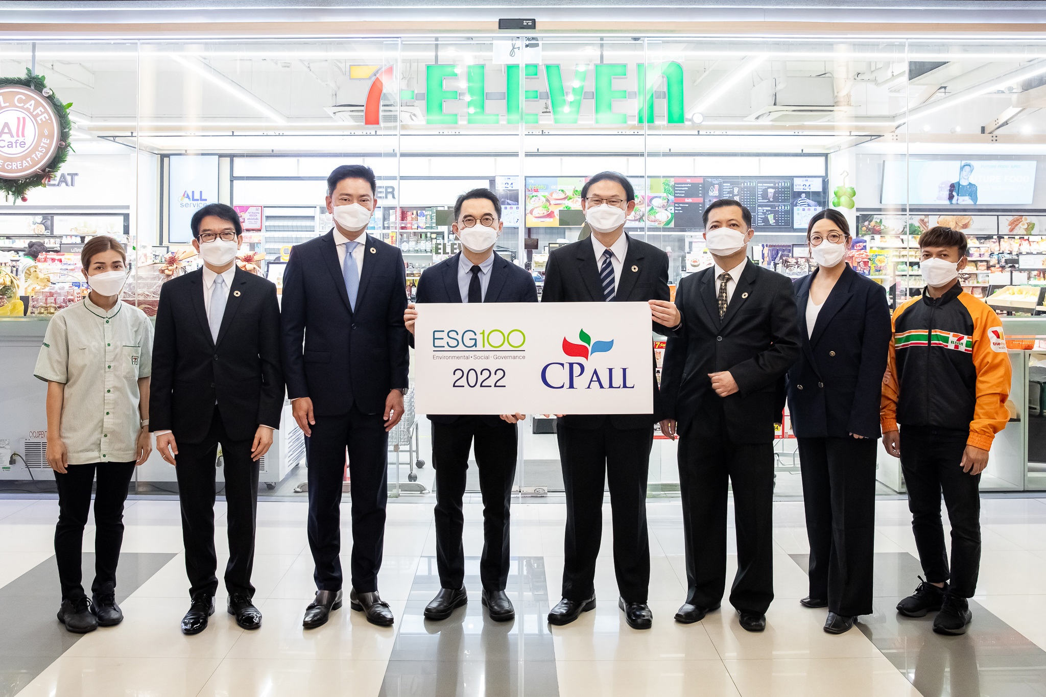 ด้านคุณยุทธศักดิ์ ภูมิสุรกุล ประธานเจ้าหน้าที่บริหาร บริษัท ซีพี ออลล์ จำกัด (มหาชน) ผู้บริหารเซเว่น อีเลฟเว่น และเซเว่น เดลิเวอรี่ เปิดเผยว่า สถาบันไทยพัฒน์ประกาศให้บริษัท ซีพี ออลล์ จำกัด (มหาชน) (CPALL) ติดอันดับ ESG100 ประจำปี 2565 ด้วยการคัดเลือกจาก 851 หลักทรัพย์จดทะเบียน ให้เป็นบริษัทที่มีการดำเนินงานโดดเด่นด้านสิ่งแวดล้อม สังคม และ ธรรมาภิบาล (ESG) ในกลุ่มบริการ (Services) ในรอบการประเมินปี 2565 โดย CPALL อยู่ในทำเนียบ ESG100 ต่อเนื่อง 5 ปีติดต่อกัน (2561-2565)