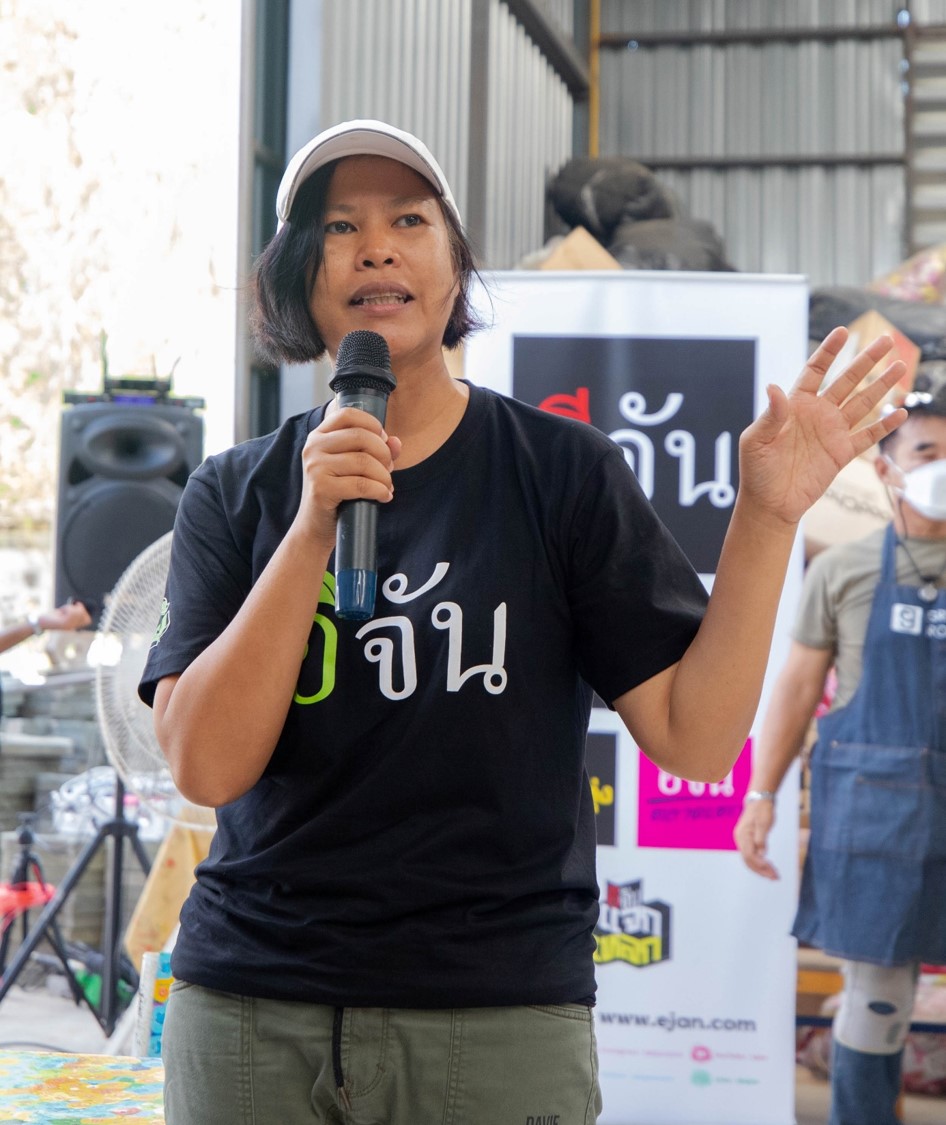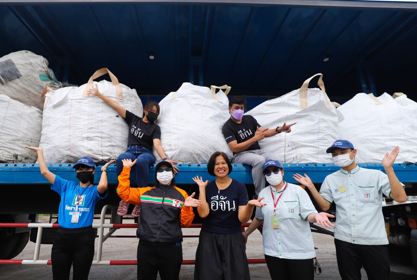ด้าน คุณประสิทธิ์ ฉกาจธรรม รองกรรมการผู้จัดการ บมจ.ซีพี ออลล์ ผู้บริหารเซเว่น อีเลฟเว่น และ เซเว่น เดลิเวอรี่ กล่าวว่า ซีพี ออลล์เล็งเห็นถึงปัญหาสิ่งแวดล้อมประเภทขยะพลาสติกของประเทศ ว่าเป็นปัญหาสำคัญเร่งด่วนที่ต้องรีบแก้ไขอย่างจริงจัง และร่วมพัฒนาชุมชนและสังคมควบคู่ไปกับการอนุรักษ์สิ่งแวดล้อมมมาอย่างต่อเนื่อง โดยทราบมาว่าเพจอีจัน เตรียมที่จะสร้างโรงเรียนให้เด็กพิเศษ ที่จ.ประจวบคีรีขันธ์ และอยากให้ถนนในโรงเรียนเป็นถนนรักษ์โลก ทางบริษัทฯจึงได้รวบรวมพลาสติกเหลือใช้จากถังคัดแยกขยะหน้าร้านเซเว่น อีเลฟเว่น, อาคารสำนักงาน, ศูนย์กระจายสินค้า กว่า 2.2 ตัน เพื่อส่งมอบให้กับ ทาง Green Road และนำเข้าสู่กระบวนการ Upcycling เพื่อนำมาหลอมและอัดเป็นเม็ดเพื่อใช้ผสมกับยางมะตอย แปรรูปพลาสติกให้เป็นพื้นถนนต่อไป ซึ่งโครงการนี้นับว่าเป็นประโยชน์ในการนำพลาสติกเหลือใช้นำมาก่อให้เกิดประโยชน์ได้ใหม่ไม่สูญเปล่า อีกทั้งสอดคล้องกับนโยบาย เซเว่น โก กรีน เพื่อสิ่งแวดล้อม 24 ชั่วโมง ของซีพี ออลล์ อีกด้วย