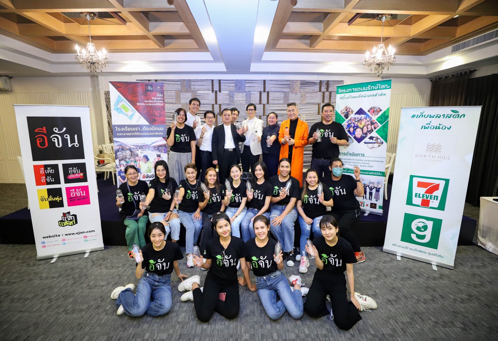 งานเปิดตัวโครงการ “อีจัน x Green Road x เซเว่น อีเลฟเว่น สร้างถนนพลาสติก รักษ์โลก” โดยมีนายประสิทธิ์ ฉกาจธรรม รองกรรมการผู้จัดการ บริษัท ซีพี ออลล์ จำกัด (มหาชน), ผศ.ดร. เวชสวรรค์ หล้ากาศ อาจารย์ประจำภาควิชาเทคโนโลยีอุตสาหกรรม คณะวิทยาศาสตร์และเทคโนโลยี มหาวิทยาลัยราชภัฏเชียงใหม่ เจ้าของเพจ Green Road, นางสาวสมปรารถนา นาวงษ์ ผู้ก่อตั้งเพจอีจัน และ นายบวรเวทย์ ตันตรานนท์ ผู้ช่วยกรรมการผู้จัดการ บริษัท ชอยส์ มินิสโตร์ จำกัด ผู้บริหารร้านเซเว่น อีเลฟเว่นในพื้นที่ จ.เชียงใหม่ พร้อมกับจิตสาธารณะซีพี ออลล์ และจิตอาสาเพจอีจัน ร่วมงาน
