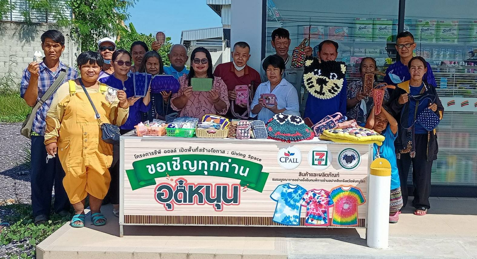 บริษัท ซีพี ออลล์ จำกัด (มหาชน) โดยสำนักกิจการเพื่อสังคมและสิ่งแวดล้อม และสำนักปฏิบัติการ 2-RN ร่วมกันดำเนินโครงการ Giving Space: เปิดพื้นที่สร้างโอกาส มอบพื้นที่หน้าร้านเซเว่นอีเลฟเว่น สาขาถนนเลี่ยงเมือง (หัวรอ) รหัสร้าน บมจ. 17645 อ.เมืองพิษณุโลก จ.พิษณุโลก ให้แก่ชมรมบูรณาการอย่างยั่งยืนคนพิการตำบลปากโทกจังหวัดพิษณุโลก เพื่อวางจำหน่ายสินค้าซึ่งผลิตโดยกลุ่มคนพิการโดยไม่เสียค่าใช้จ่าย