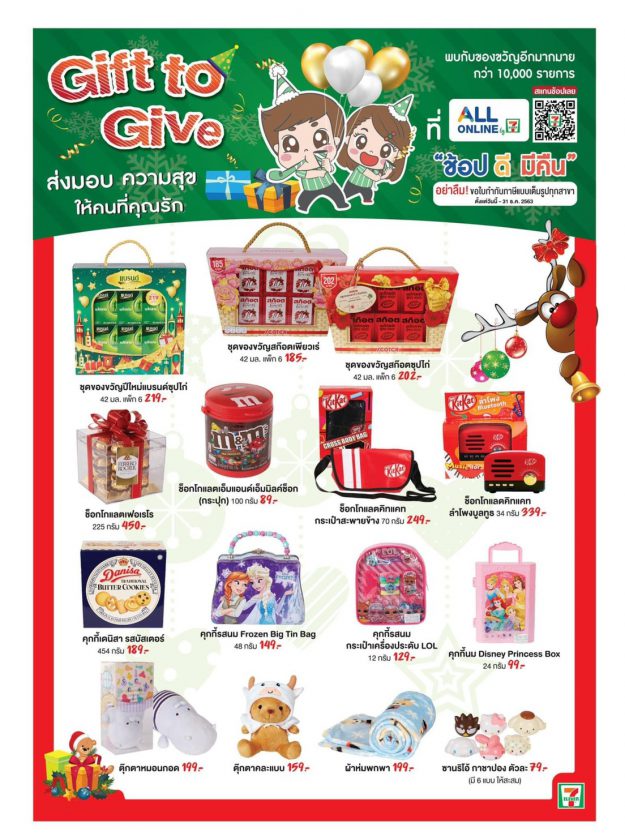 ใกล้จะถึงเทศกาลปีใหม่ 2021 แล้ว ไหนใครยังหาของขวัญไม่ได้บ้าง? ไม่ได้ไม่เป็นไรค่ะ ซีพี ออลล์ นิวส์ มีของขวัญปีใหม่สุดพิเศษ มาขอแนะนำ Gift to Give ของขวัญปีใหม่สุดพิเศษ โดนใจผู้ให้ ถูกใจผู้รับ ส่งมอบทั้งความสุข รอยยิ้ม เสียงหัวเราะ และความรู้สึกดีๆให้กับคนพิเศษของท่าน สำหรับของขวัญที่เซเว่นฯ ได้คัดเลือกเป็นพิเศษในปีนี้ มีหลากหลายกลุ่มสินค้า เพื่อส่งมอบความสุข ที่ตอบสนองไลฟ์สไตล์สำหรับทุกเพศ ทุกวัย อาทิ กระเช้าเครื่องดื่มบำรุงสุขภาพ ตุ๊กตาสุดน่ารัก ผลไม้สด เบเกอรี่ คุกกี้ วิตามิน อาหารเสริม เครื่องสำอาง ปฏิทินมงคล เครื่องใช้ไฟฟ้าและอุปกรณ์ IT ส่งตรงถึงมือ พร้อมโปรโมชั่นสุดพิเศษ และสิทธิ์แลกซื้อสุดคุ้ม ร่วมโครงการ “ช้อป ดี มีคืน” ในเวลาเดียวกัน
