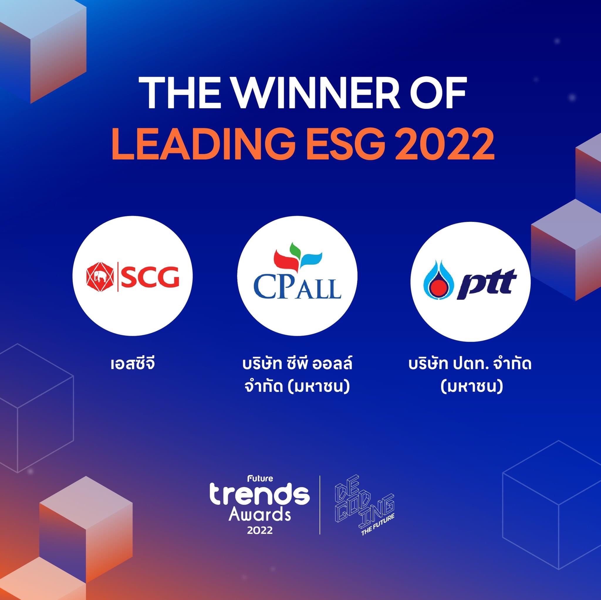 คุณประสิทธิ์ ฉกาจธรรม (ซ้าย) รองกรรมการผู้จัดการ สายงานพัฒนาความยั่งยืน บริษัท ซีพี ออลล์ จำกัด (มหาชน) ผู้บริหารเซเว่น อีเลฟเว่น และ เซเว่น เดลิเวอรี่ รับรางวัล Leading ESG 2022 จาก คุณธนโชติ วิสุทธิสมาน (ขวา) ประธานเจ้าหน้าที่บริหาร บริษัท ไลค์ มี จำกัด และ Future Trends ในงาน Future Trends Awards 2022 ในฐานะองค์กรที่เป็นผู้นำในการบริหารจัดการด้านพัฒนาความยั่งยืน หรือ ESG (Environment, Social, Governance) และมีผลสำเร็จเป็นที่ประจักษ์แก่ชุมชนและสังคมมาอย่างต่อเนื่อง ตามปณิธานองค์กร “ร่วมสร้างสรรค์และแบ่งปันโอกาสต่อกัน” ณ AIS Design Centre (AIS D.C.) เมื่อเร็วๆนี้