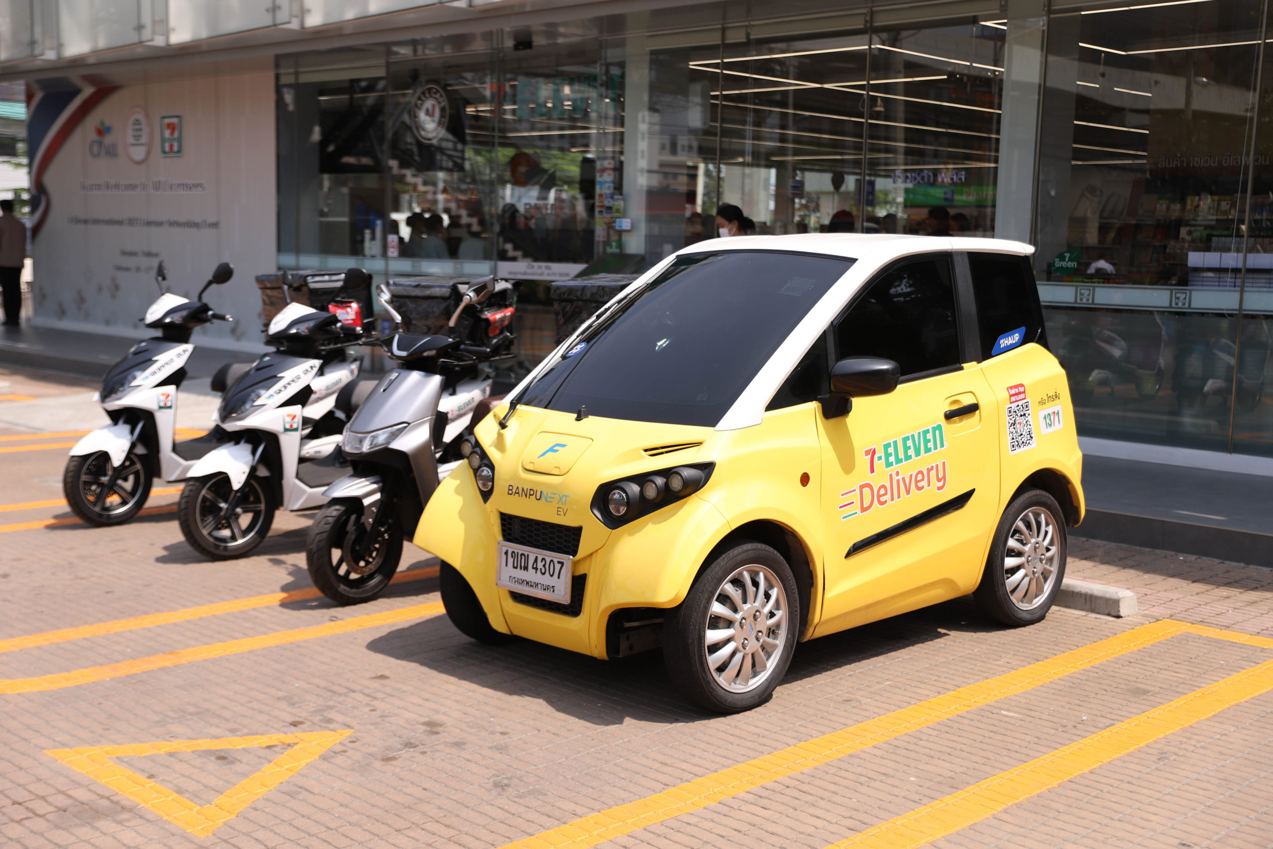 คุณยุทธศักดิ์ ภูมิสุรกุล ประธานเจ้าหน้าที่บริหาร บมจ.ซีพี ออลล์ กล่าวว่า “ปัจจุบันพลังงานสะอาดหรือพลังงานไฟฟ้าเริ่มเป็นที่นิยมและได้รับความสนใจจากทั่วโลก เพราะช่วยลดการปล่อยมลพิษในอากาศที่ก่อให้เกิดภาวะเรือนกระจก และนับเป็นอีกหนึ่งทางเลือกใหม่ที่ดีต่อสิ่งแวดล้อมและโลก โดยเซเว่น อีเลฟเว่น ได้ร่วมกับซัพพลายเออร์ นำนวัตกรรมมาปรับเปลี่ยนพาหนะในการส่งสินค้าเพื่ออำนวยความสะดวกให้กับลูกค้าผ่านบริการ เซเว่น เดลิเวอรี่ เป็นรถที่ใช้พลังงานจากกระแสไฟฟ้า โดยทยอยปรับเปลี่ยนและกระจายสู่สาขาต่างๆทั่วประเทศ