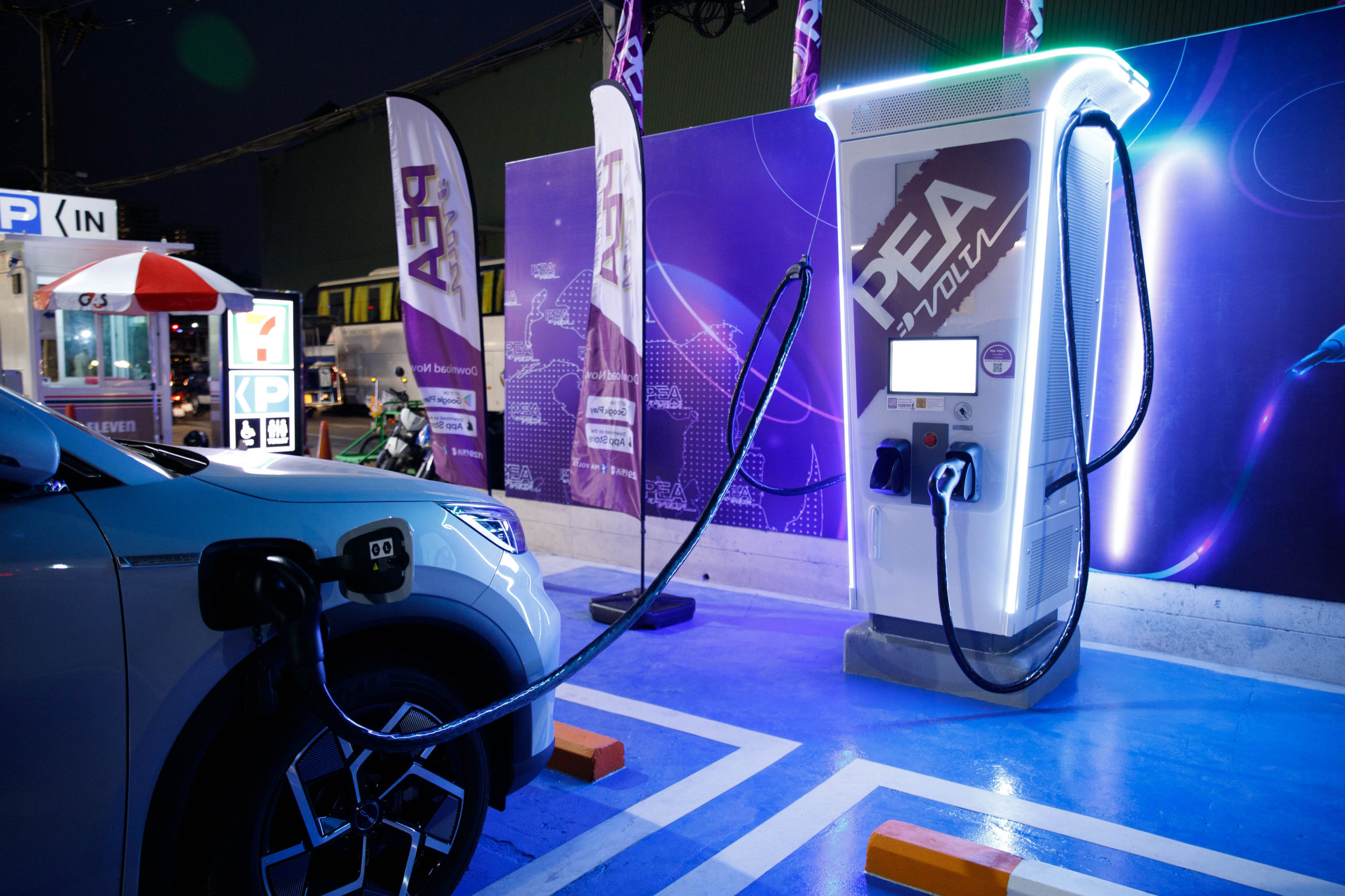 ล่าสุด ซีพี ออลล์ ร่วมกับ เมืองพัทยา และ การไฟฟ้าส่วนภูมิภาค เปิดบริการเครื่องอัดประจุยานยนต์ไฟฟ้าพิกัดสูงที่สุดในประเทศไทย (EV Super Charge) ขนาด 360 kW ณ สถานี PEA VOLTA บริเวณ ร้านเซเว่น อีเลฟเว่น สาขาท่าเรือแหลมบาลีฮาย อำเภอบางละมุง จังหวัดชลบุรี เดินหน้านโยบาย 7 Go Green เพื่อสิ่งแวดล้อม 24 ชั่วโมง นับเป็นหนึ่งในโครงการที่อยู่ภายใต้นโยบาย 7 Go Green ซึ่งเป็นการประสานงานร่วมกันระหว่าง ซีพี ออลล์, เมืองพัทยา และการไฟฟ้าส่วนภูมิภาค ที่ได้มีเจตนารมณ์ร่วมกันในการรักษาสิ่งแวดล้อมและการใช้พลังงานสะอาดอย่างยั่งยืน อีกทั้งยังช่วยกระตุ้นเศรษฐกิจและการท่องเที่ยวในการนำรถไฟฟ้า (EV) ออกมาใช้มากขึ้นอีกด้วย นับว่าความร่วมมือครั้งนี้จะส่งผลให้เกิดประโยชน์ทั้งต่อประเทศชาติ ประชาชน และ สังคม ไปพร้อม ๆ กัน