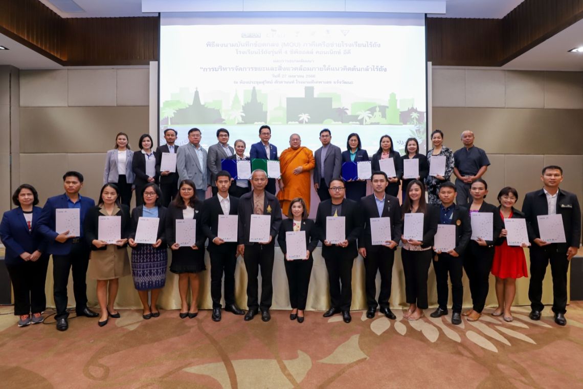 ด้าน นายตรีเทพ ปาลกะวงศ์ ณ อยุธยา ประธานคณะทำงานโครงการสานอนาคตการศึกษา CONNEXT ED บมจ.ซีพี ออลล์ กล่าวเพิ่มเติมว่า สำหรับโครงการต้นกล้าไร้ถังรุ่นที่ 4 มีเครือข่ายพันธมิตรภาคเอกชนที่สนใจเข้าร่วมเพิ่ม 3 หน่วยงาน ได้แก่ 1.บริษัท เจเนซิส เอกซ์ จำกัด สนับสนุนองค์ความรู้เกี่ยวกับขยะเศษอาหาร (Food Waste) รีไซเคิลขยะอินทรีย์ ด้วยการนำเศษอาหารมาเลี้ยงหนอนแมลงทหารดำ (Black Soldier Fly) เพื่อนำหนอนไปเลี้ยงสัตว์อื่นต่อ เช่น ไก่ ปลา ให้สัตว์ได้รับโปรตีนสูง เพิ่มคุณภาพไข่และปลาให้มีน้ำหนักดีขึ้น และ 2.สถาบันวิจัยสภาวะแวดล้อม จุฬาลงกรณ์มหาวิทยาลัย มาให้การสนับสนุนองค์ความรู้กฎหมายที่เกี่ยวข้องกับการจัดการขยะ และ 3.บริษัท เทคแคร์โซลูชั่น จำกัด ผู้ร่วมพัฒนาระบบบันทึกข้อมูลการจัดการขยะ พร้อมร่วมกับ 10 ภาคีด้านการจัดการขยะในปีที่ผ่านมาได้แก่ 1.บริษัท เอสซีจี เคมิคอลส์ จำกัด (มหาชน) หรือ SCGC 2.บริษัท เอสซีจี แพคเกจจิ้ง จำกัด (มหาชน) หรือ SCGP 3.บริษัท ยูนิลีเวอร์ ไทย เทรดดิ้ง จำกัด (Unilever) 4.บริษัท เอส ไอ จี คอมบิบล็อค จำกัด 5.บริษัท ไทยเบฟเวอเรจ แคน จำกัด 6.บริษัท เต็ดตรา แพ้ค (ประเทศไทย) จำกัด 7.กลุ่มอำพลฟูดส์ (Amphol Foods Group) 8.บริษัท สถานีรีไซเคิล วงษ์พาณิชย์สุวรรณภูมิ จำกัด 9.บริษัท อีโค่ เฟรนด์ลี่ ไทย จำกัด และ 10.วัดจากแดง ส่งผลให้ภาคีเครือข่ายต้นกล้าไร้ถังมีสมาชิกทั้งสิ้น 13 องค์กร และในอนาคตคาดว่าจะมีพันธมิตรใหม่ๆ เข้ามาร่วมกันยกระดับระบบนิเวศและเครือข่ายการจัดการขยะของไทยให้แข็งแกร่งยิ่งขึ้น