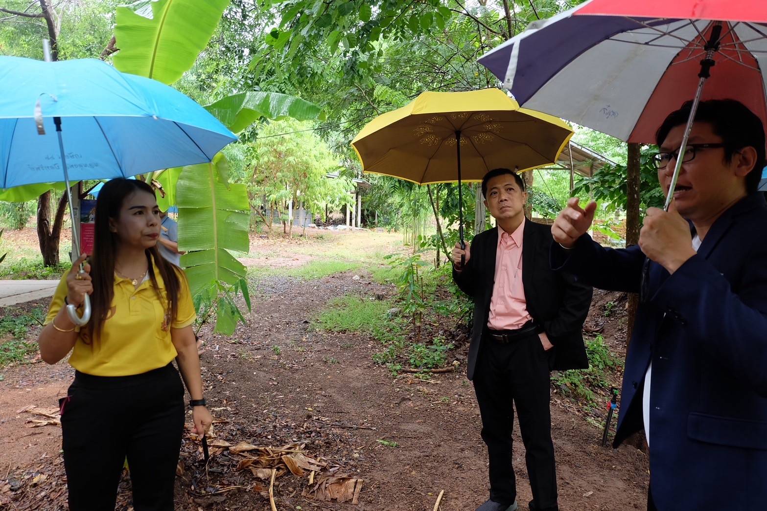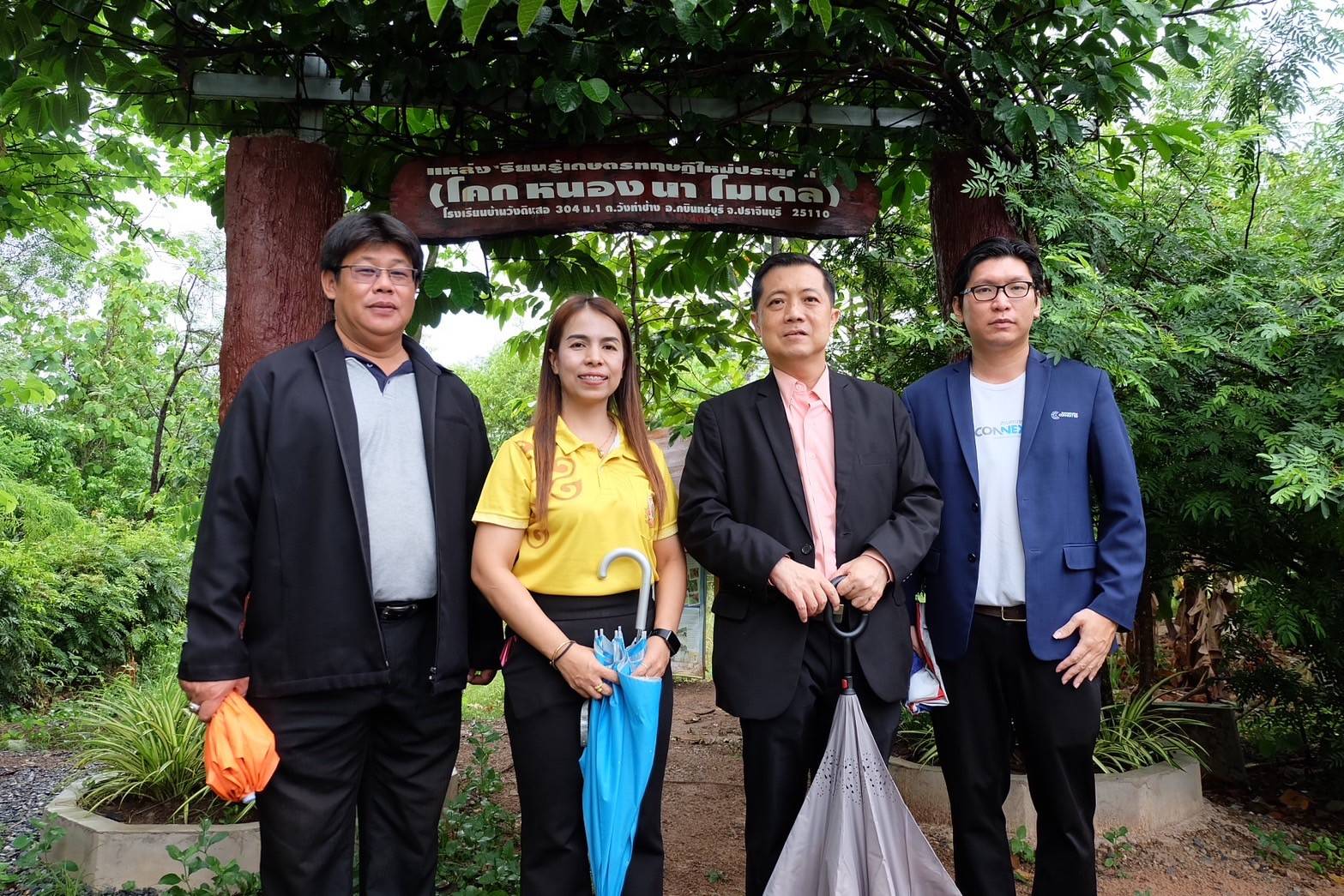 โอกาสนี้คณะทำงานได้เยี่ยมชมและศึกษาดูงาน “โคก หนอง นา โมเดล” ในฐานการเรียนรู้บันได 9 ขั้น ตามปรัชญาเศรษฐกิจพอเพียง ทั้งนี้อันเกิดจากความร่วมแรงร่วมใจของคณาจารย์และนักเรียนโรงเรียนบ้านวังดินสอ โดยมี ซีพี ออลล์ ร่วมให้การสนับสนุน ผ่านการจัดสรรพื้นที่ “โคก” คือพื้นที่สูงไว้ปลูกป่า 3 อย่างประโยชน์ 4 อย่าง “หนอง” คือพื้นที่กักเก็บน้ำไว้ใช้ตลอดปี และ “นา” พื้นที่เพาะปลูกทั้งอาหารหลักอย่างข้าว รวมถึงอาหารเสริมคือผักสวนครัว อาจกล่าวได้ว่าพื้นที่แห่งนี้เป็นหลักประกันความยั่งยืนในการใช้ชีวิตแบบพึ่งพาตนเอง ที่สำคัญอย่างยิ่งคือเป็นแหล่งเรียนรู้ของนักเรียน ชุมชน และโรงเรียนเครือข่ายในการส่งต่อและสนับสนุนองค์ความรู้ควบคู่ไปกับการ “บูรณาการหลักสูตรท้องถิ่น” ตามแนวทางของโครงการของกลุ่มโรงเรียน CP ALL CONNEXT ED ครบทุกมิติความยั่งยืน ตามปณิธานองค์กร “Giving & Sharing”
