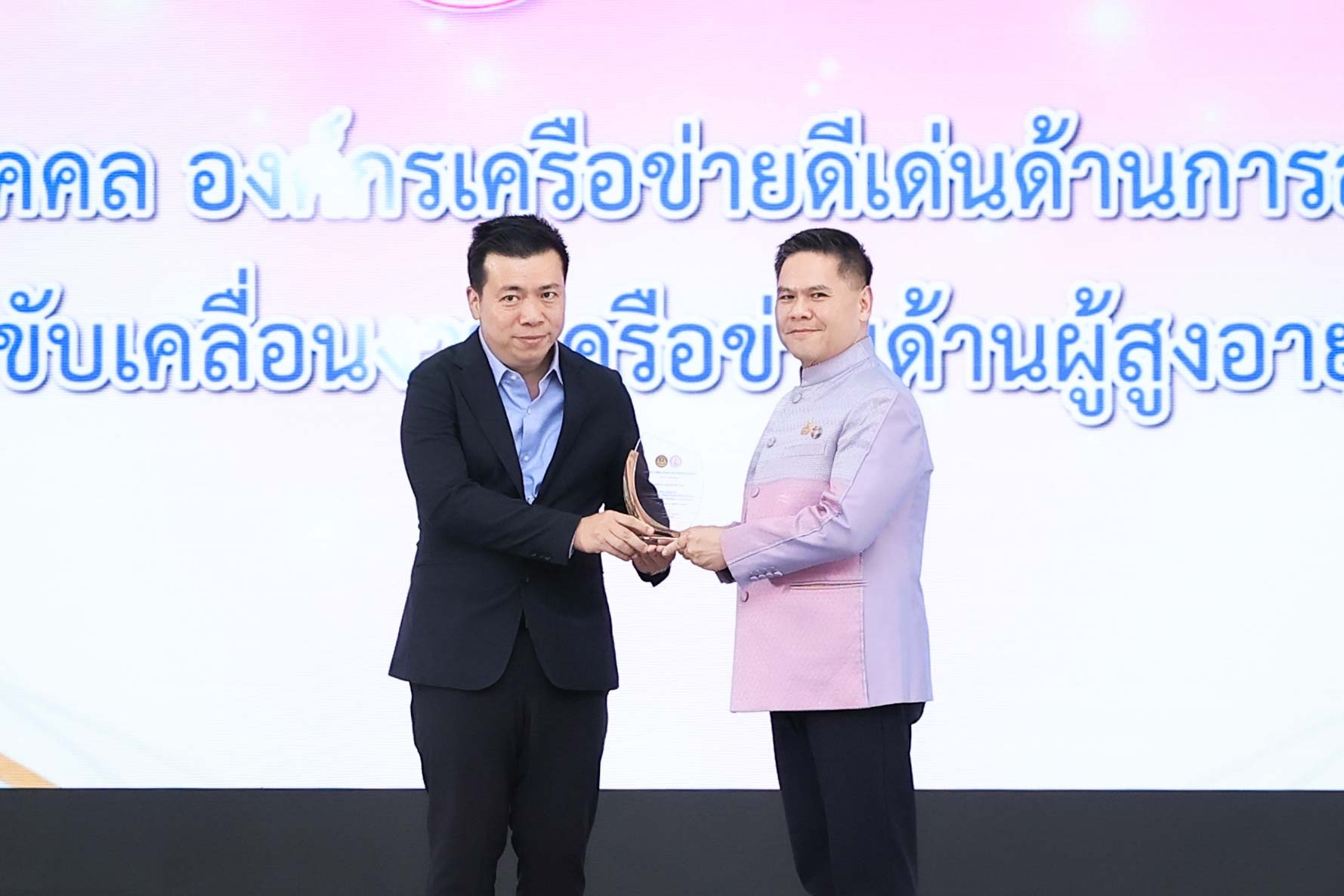 นายวราวุธ ศิลปอาชา (ขวา) รัฐมนตรีว่าการกระทรวงการพัฒนาสังคมและความมั่นคงของมนุษย์ มอบโล่ประกาศเกียรติคุณองค์กรเครือข่ายดีเด่นด้านการส่งเสริมและสนับสนุนการขับเคลื่อนงานเครือข่ายด้านผู้สูงอายุ ในงาน วันผู้สูงอายุแห่งชาติและวันแห่งครอบครัว ประจำปี 2568 ให้กับ บริษัท เคาน์เตอร์เซอร์วิส จำกัด ในกลุ่มบมจ.ซีพี ออลล์ โดยมี นายธนสิทธิ์ ตันสกุล (ซ้าย) ผู้จัดการทั่วไปอาวุโส บริษัท เคาน์เตอร์เซอร์วิส จำกัด เป็นผู้แทนรับมอบ ณ ลานอเนกประสงค์ ชั้น 2 อาคารรัฐประศาสนภักดี (อาคาร B) ศูนย์ราชการเฉลิมพระเกียรติ 80 พรรษา กรุงเทพมหานคร เมื่อเร็ว ๆ นี้ โดย กรมกิจการผู้สูงอายุ ได้ดำเนินการสรรหาและคัดเลือกองค์กรเครือข่ายดีเด่นด้านการส่งเสริม และสนับสนุนการขับเคลื่อนงานเครือข่ายด้านผู้สูงอายุ ประจำปี 2568 เป็นการบูรณาการทำงานร่วมกันของทุกหน่วยงาน ทั้งภาครัฐ ภาคเอกชน ตลอดจนภาคีเครือข่าย ที่มีส่วนร่วมอย่างเข้มแข็งในการส่งเสริม และพัฒนาศักยภาพกลุ่มเป้าหมายให้มีความมั่นคงในชีวิต รวมถึงสร้างสังคมแห่งโอกาส และความเท่าเทียม แก่ผู้สูงอายุกว่า 13 ล้านคนทั่วประเทศ โดยกรมกิจการผู้สูงอายุได้เปิดบริการกู้ยืมเงินทุนเพื่อประกอบอาชีพสำหรับผู้สูงอายุ มีผู้เข้าร่วมจำนวนกว่า 120,000 รายต้องชำระเงินคืนเป็นรายงวดทุกเดือน ระยะเวลา 3 ปี โดยไม่คิดดอกเบี้ย เคาน์เตอร์เซอร์วิส ได้เป็นช่องทางการรับชำระเงินคืนค่ากองทุนแก่ผู้สูงอายุ โดยไม่มีค่าธรรมเนียม ให้บริการเป็นระยะเวลากว่า 12 ปี ตั้งแต่เปิดให้บริการ และอำนวยความสะดวกแก่ผู้สูงอายุทั่วประเทศ ด้วยจุดให้บริการ เซเว่นอีเลฟเว่นทั่วประเทศกว่า 15,000 สาขา