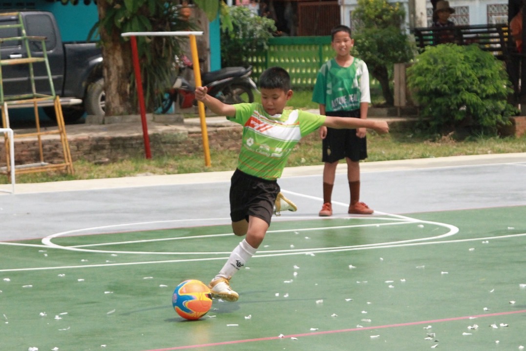 นอกจากนี้ ยังมีการจัดแข่งขันฟุตซอลรอบชิงชนะเลิศ พร้อมมอบถ้วยรางวัลที่ทำจากพลาสติกกำพร้าให้กับทีมชนะเลิศ บรรยากาศเต็มไปด้วยความสนุกสนานและความประทับใจจากน้อง ๆ นักเรียน คณะคุณครู และชาวบ้านในพื้นที่