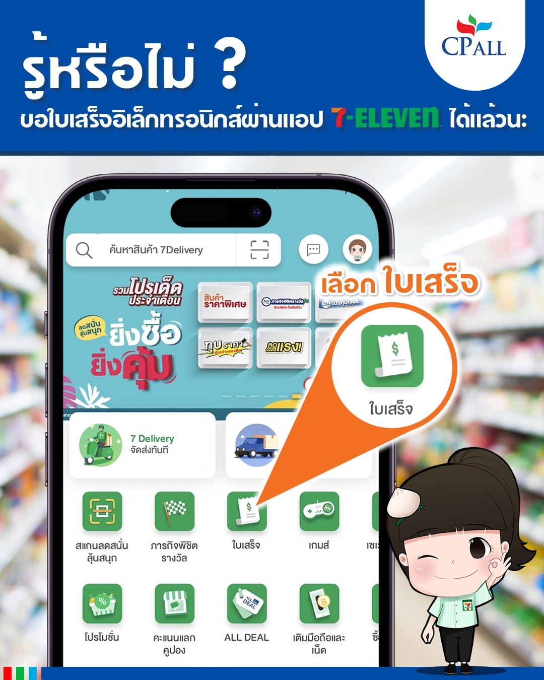 รู้หรือไม่? ใบเสร็จไร้กระดาษ มาช่วยกันลดขยะ ร่วมอนุรักษ์สิ่งแวดล้อมที่ร้านเซเว่นฯกันเลย โดยขอใบเสร็จอิเล็กทรอนิกส์ผ่านแอป 7-Eleven ได้เเล้วนะ![]()