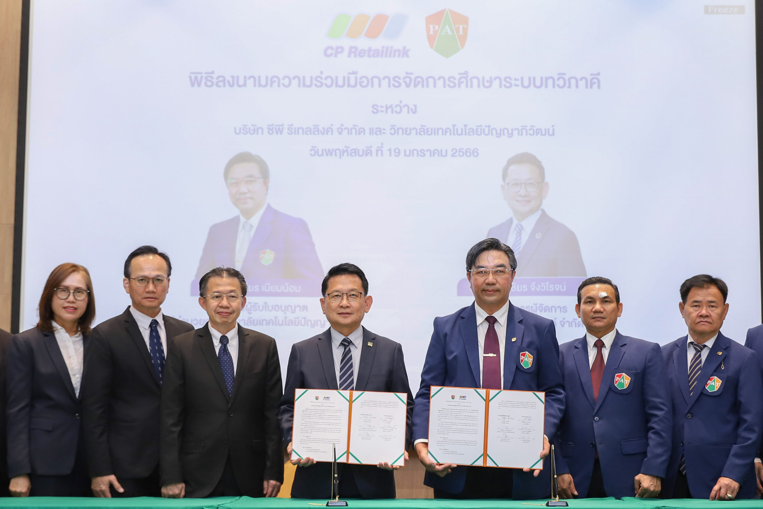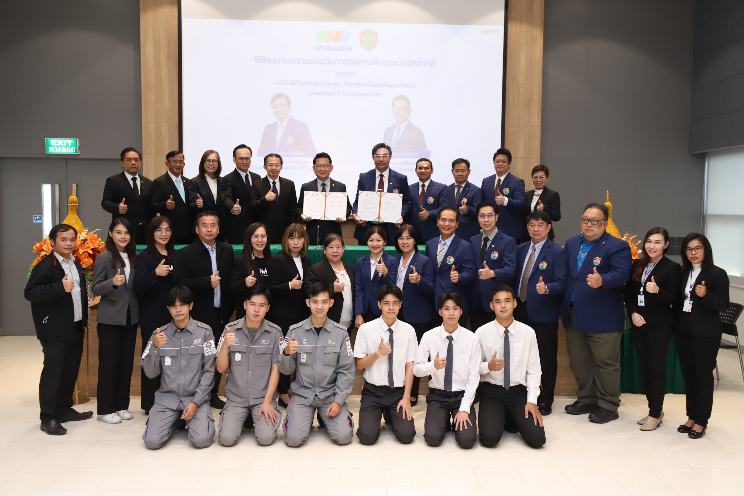 วิทยาลัยเทคโนโลยีปัญญาภิวัฒน์ และบริษัท ซีพี รีเทลลิงค์ จำกัด เพื่อพัฒนาผู้เรียนสาขาช่างไฟฟ้ากำลัง ในระดับ ปวส. ให้มีขีดความสามารถและศักยภาพที่สูงขึ้น เพื่อตอบสนองความต้องการที่หลากหลายและเปลี่ยนแปลงไปตามยุคสมัยของลูกค้าของสถานประกอบการ ด้วยการเรียนการสอนรูปแบบทวิภาคี จะทำให้ผู้เรียนมีความรู้ความชำนาญ และมีสมรรถนะที่ตรงตามความต้องการของสถานประกอบการ โดยบริษัท ซีพี รีเทลลิงค์ฯ สนับสนุนทุนการศึกษาจำนวน 60 ทุนให้กับนักศึกษา มูลค่า 4,800,000 บาท พร้อมมีเบี้ยเลี้ยงระหว่างการฝึกอาชีพ รวมไปถึงการรับประกันการมีงานทำของนักศึกษาเมื่อสำเร็จการศึกษา และโอกาสในการศึกษาต่อที่สูงขึ้นในระดับปริญญาตรี กับสถาบันการจัดการปัญญาภิวัฒน์ เป็นไปตามปณิธานของซีพี ออลล์ “ร่วมสร้างสรรค์และแบ่งปันโอกาสต่อกัน”