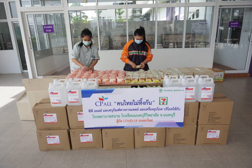 ซีพี ออลล์ ทยอยส่งมอบครุภัณฑ์ทางการแพททย์ที่จำเป็น ให้แก่โรงพยาบาลสนาม โดยวันนี้ 27 เมษายน 2564 คุณโตมร จันทรา ผู้จัดการทั่วไป สำนักประสานรัฐกิจ เป็นตัวแทน ซีพี ออลล์ ส่งมอบครุภัณฑ์ทางการแพทย์ แอลกอฮอล์ น้ำดื่มและเบเกอรี่ ในโครงการ “คนไทยไม่ทิ้งกัน” ภายใต้โครงการซีพี ร้อยเรียงใจ สู้ภัยโควิด-19 ให้แก่โรงพยาบาลสนาม จังหวัดนนทบุรี ณ โรงเรียนนนทบุรีวิทยาลัย โดยมีนางสาวอโรชา นันทมนตรี รองผู้ว่าราชการจังหวัดนนทบุรี เป็นผู้รับมอบ เพื่อนำไปใช้ในการปฏิบัติหน้าที่ ดูแลผู้ป่วยโควิด-19 ต่อไป