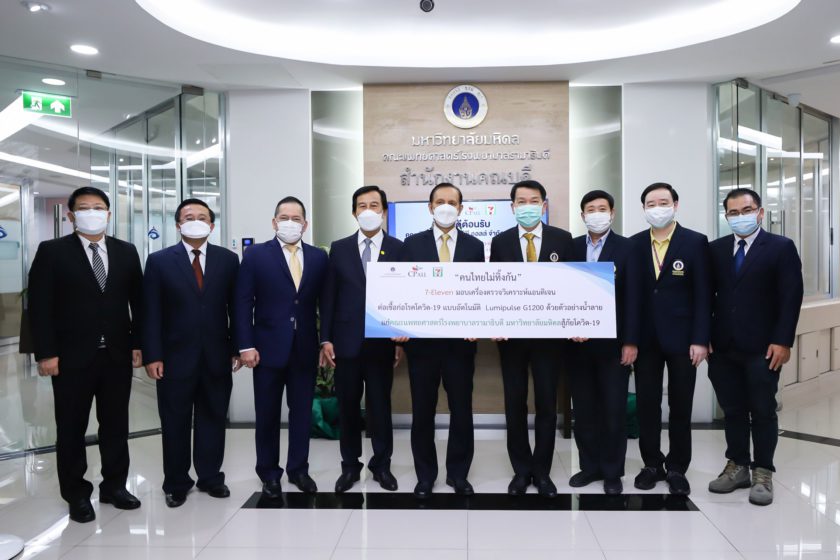 บริษัท ซีพี ออลล์ จำกัด (มหาชน) ผู้บริหารเซเว่น อีเลฟเว่น และเซเว่น เดลิเวอรี่ ในฐานะภาคเอกชนที่อยู่เคียงข้างสังคมไทยในทุกวิกฤต มีความมุ่งมั่นที่จะสนับสนุนภารกิจของบุคลากรทางการแพทย์ และเจ้าหน้าที่สาธารณสุข โดยเฉพาะอย่างยิ่งช่วงเวลาที่ประเทศไทยต้องเผชิญกับการแพร่ระบาดของโรคโควิด-19 จึงได้มอบเครื่องตรวจวิเคราะห์แอนติเจนต่อเชื้อก่อโรคโควิด-19 แบบอัตโนมัติ Lumipulse G1200 ด้วยตัวอย่างน้ำลายจากประเทศญี่ปุ่น จำนวน 2 เครื่อง ให้คณะแพทยศาสตร์โรงพยาบาลรามาธิบดี มหาวิทยาลัยมหิดล ซึ่งมีบทบาทสำคัญในการดูแลสุขภาพประชาชน