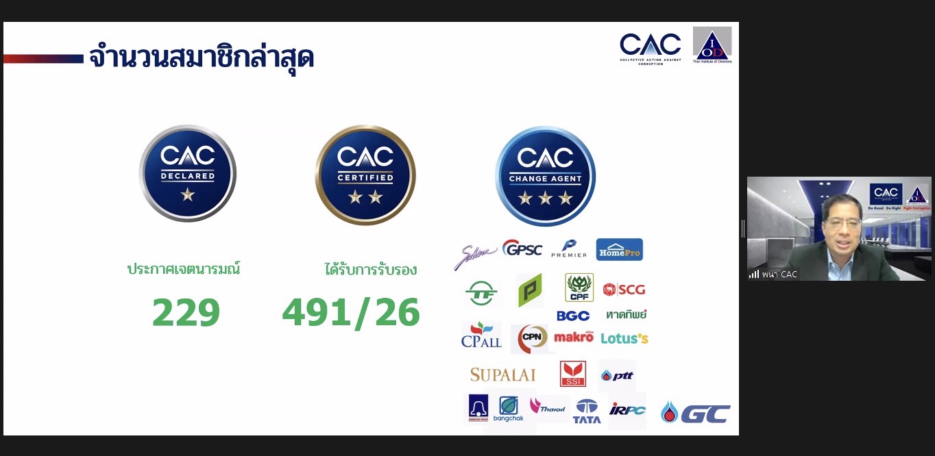 โดยภายในงานได้รับเกียรติจากคุณพนา รัตนบรรณางกูร ผู้อำนวยการแนวร่วมต่อต้านคอร์รัปชั่นของภาคเอกชนไทย หรือ CAC สมาคมส่งเสริมสถาบันกรรมการบริษัทไทย (IOD) มาร่วมถ่ายทอดความรู้และแบ่งปันประสบการณ์ เรื่องการป้องกันความเสี่ยงการทุจริตและคอร์รัปชันในการดำเนินงาน และสร้างความเข้าใจให้แก่ผู้ประกอบการ SME รวมทั้งสนับสนุนให้ผู้ประกอบการประกาศเจตนารมณ์ และยกระดับการดำเนินเป็นองค์กรที่ได้รับรองเป็นแนวร่วมการต่อต้านคอร์รัปชั่นเพื่อสร้างระบบนิเวศของการทำธุรกิจที่โปร่งใสต่อไป
