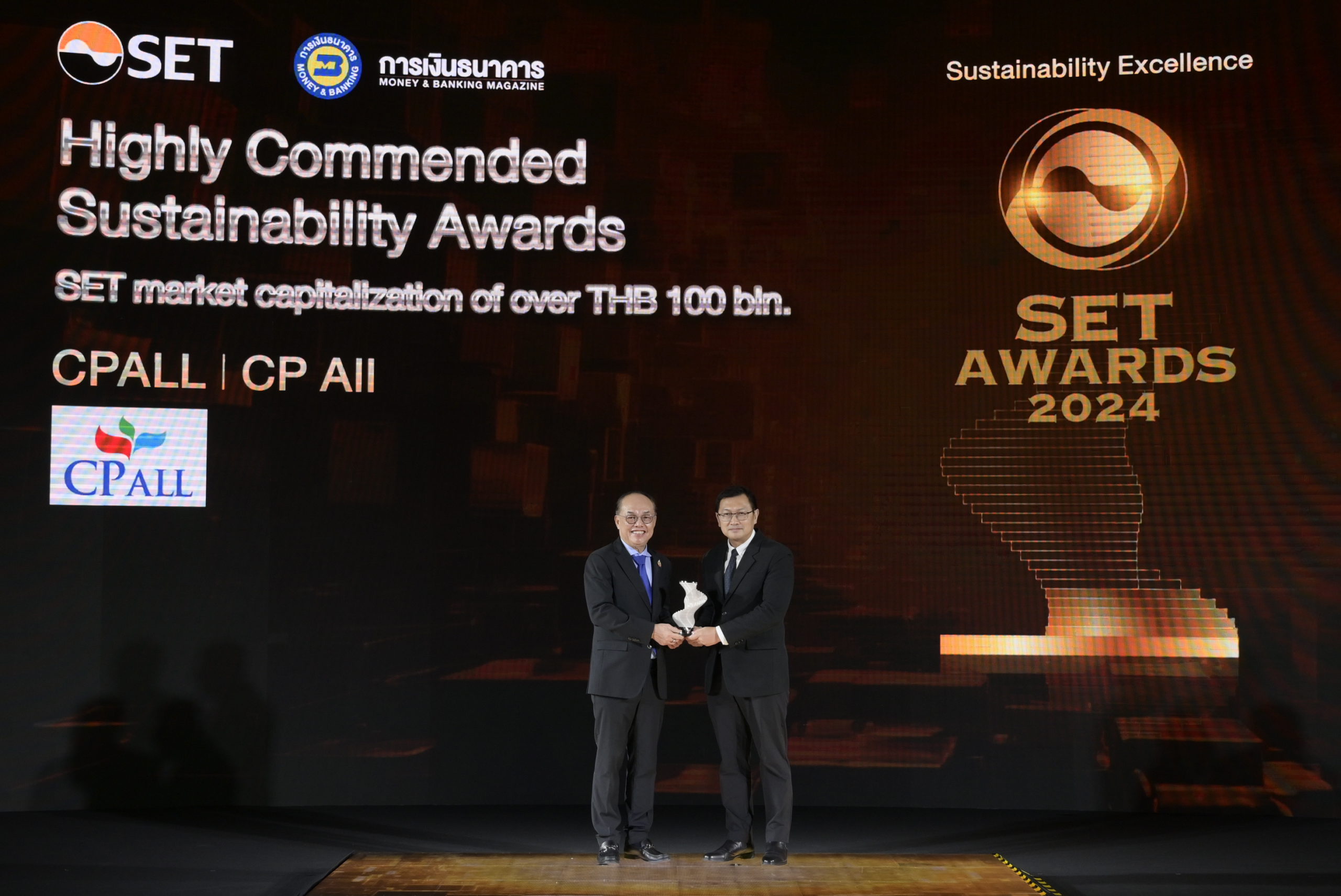 โดยในปีนี้ ซีพี ออลล์ ซึ่งอยู่ในกลุ่มบริษัทจดทะเบียนในตลาดหลักทรัพย์ ที่มีมูลค่าหลักทรัพย์ตามราคาตลาดสูงกว่า100,000 ล้านบาท ได้รับรางวัล SET AWARDS 2024 ในกลุ่มรางวัล Sustainability Excellence ประเภท Highly Commended in Sustainability Awards ต่อเนื่องเป็นปีที่ 5 ซึ่งเป็นรางวัลที่มอบให้กับบริษัทจดทะเบียนที่ดำเนินธุรกิจตามแนวทางการพัฒนาอย่างยั่งยืน