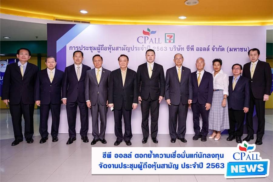 เมื่อวันที่ 16 กรกฎาคม 2563 คุณสุภกิต เจียรวนนท์ ประธานกรรมการ บริษัท ซีพี ออลล์ จำกัด (มหาชน), คุณก่อศักดิ์ ไชยรัศมีศักดิ์ ประธานกรรมการบริหาร บริษัท ซีพี ออลล์ จำกัด (มหาชน) พร้อมด้วยคณะกรรมการบริษัทฯ จัดประชุมผู้ถือหุ้นสามัญประจำปี 2563 เพื่อรายงานผลประกอบการ ในปี 2562 ณ ห้องประชุม 1111AB อาคาร ซี.พี. ทาวเวอร์ ถ.สีลม