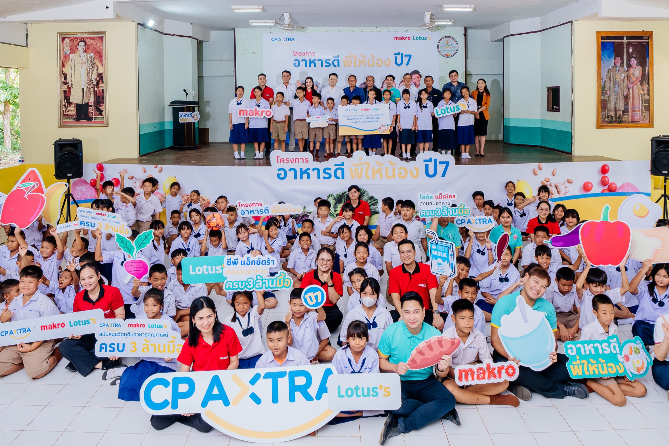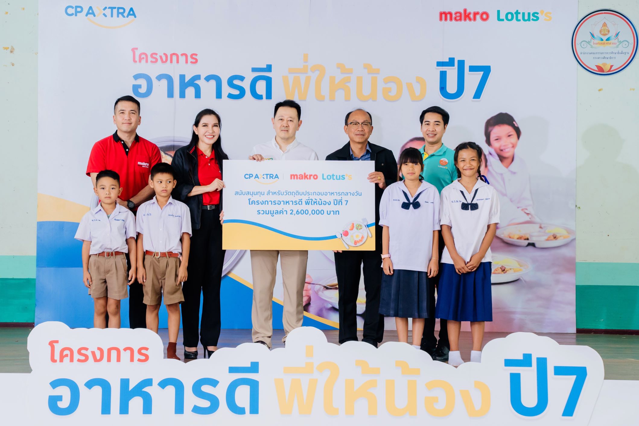 แม็คโครและโลตัส ภายใต้บริษัท ซีพี แอ็กซ์ตร้า จำกัด (มหาชน) เดินหน้าสานต่อโครงการ “อาหารดีพี่ให้น้อง” ปีที่ 7 มอบเงินสนับสนุนกว่า 2,600,000 บาท พร้อมตั้งเป้าส่งมอบวัตถุดิบอาหารกลางวันคุณภาพกว่า 3 ล้านมื้อ ตลอดปีการศึกษา 2567 ให้นักเรียนกว่า 30,000 คนในกว่า 130 โรงเรียนจาก 77 จังหวัดทั่วประเทศ ได้เข้าถึงอาหารที่ดีมีประโยชน์ ปลอดภัย และถูกต้องตามหลักโภชนาการ พร้อมจัดกิจกรรมการเรียนรู้นอกห้องเรียนสำหรับครูและนักเรียน ส่งเสริมการสร้างประสบการณ์ตรงที่จะช่วยในการพัฒนาการทั้งร่างกายและจิตใจให้กับเยาวชนไทย
