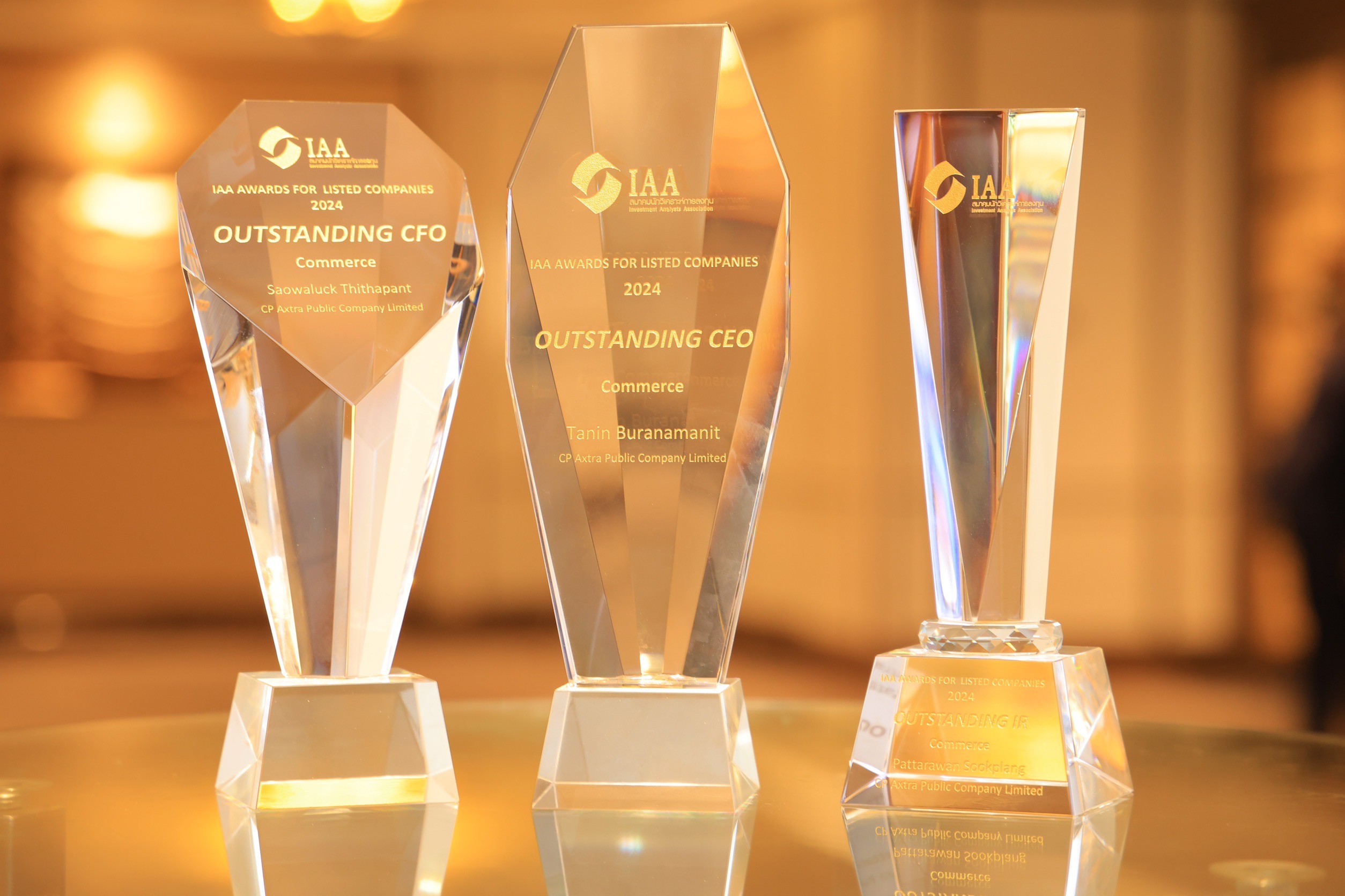 บริษัท ซีพี แอ็กซ์ตร้า จำกัด (มหาชน) ผู้ดำเนินธุรกิจค้าส่งค้าปลีก “แม็คโคร–โลตัส” โดย คุณธานินทร์ บูรณมานิต ประธานเจ้าหน้าที่บริหาร รับมอบรางวัล Outstanding CEO และ คุณภัทรวัลล์ สุกปลั่ง ผู้อำนวยการ ฝ่ายนักลงทุนสัมพันธ์ เป็นตัวแทนรับมอบรางวัล Outstanding CFO และ Outstanding IR ในกลุ่มอุตสาหกรรมพาณิชย์ จากเวที IAA Awards for Listed Companies 2024 ที่จัดขึ้นเพื่อประกาศเกียรติคุณแก่ผู้บริหารของบริษัทจดทะเบียนที่มีความรู้ความสามารถในการบริหารงาน นำพาให้บริษัทประสบความสำเร็จและเติบโตอย่างยั่งยืน จัดขึ้นโดย สมาคมนักวิเคราะห์การลงทุน (IAA) ณ โรงแรมดิ แอทธินี โฮเทล กรุงเทพฯ โดยมีท่านพิชัย ชุณหวชิร รองนายกรัฐมนตรีและรัฐมนตรีว่าการกระทรวงการคลัง เป็นประธานในพิธี และคุณไพบูลย์ นลินทรางกูร นายกสมาคมนักวิเคราะห์การลงทุน ร่วมแสดงความยินดี