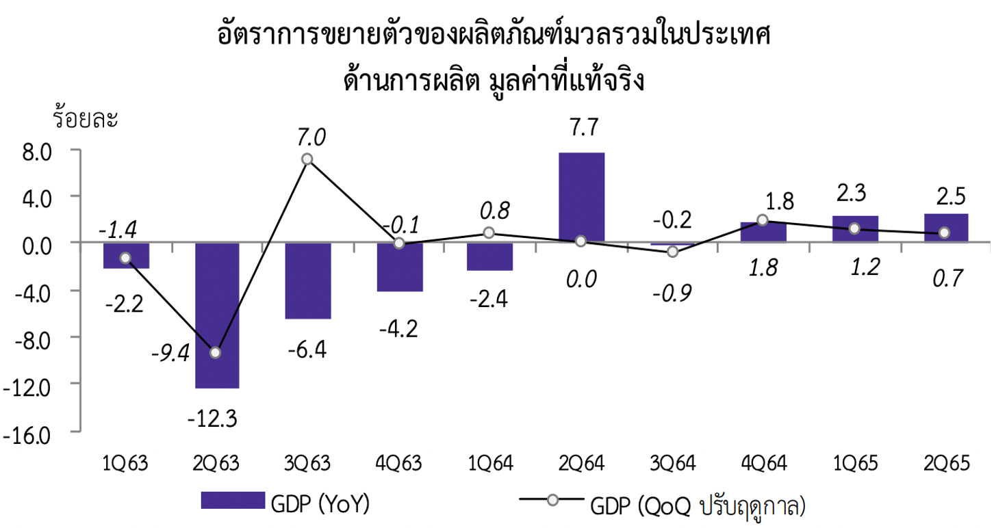 สภาพัฒน์ฯ เผยจีดีพีไทย Q2/65 โต 2.5% พร้อมปรับเป้าทั้งปีเป็น 2.7-3.2%