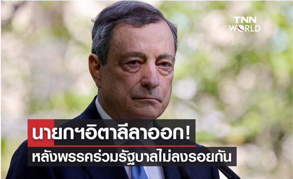 - นายกรัฐมนตรีมาริโอ ดรากี แห่งอิตาลีลาออกจากตำแหน่งอย่างเป็นทางการเพราะไม่ได้รับการสนับสนุนจากสมาชิกพรรคร่วมรัฐบาล ในการลงมติไม่ไว้วางใจ การลาออกของเขาจะนำไปสู่การเลือกตั้งก่อนกำหนดในเดือน ต.ค. และทำให้เกิดช่วงเวลาที่ไม่แน่นอนสำหรับอิตาลีและยุโรปในช่วงเวลาสำคัญ