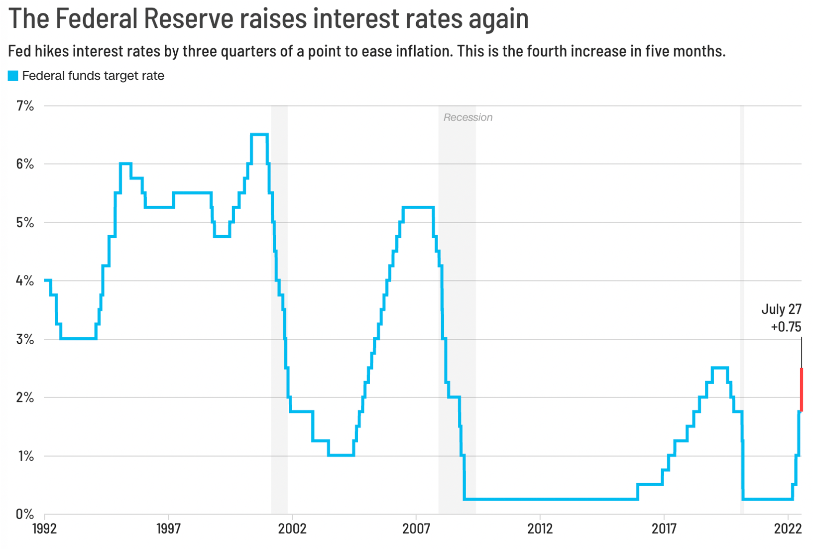- อย่างไรก็ดี ในการแถลงข่าวหลังการประชุมนโยบายการเงินของธนาคารกลางสหรัฐฯ นายเจอโรม พาวเวล ยืนยันว่าเศรษฐกิจสหรัฐยังไม่เข้าสู่ภาวะถดถอย เนื่องจากหลายภาคส่วนในระบบเศรษฐกิจยังคงแข็งแกร่ง ซึ่งรวมถึงตลาดแรงงาน โดยในด้านนโยบายการเงิน ธนาคารกลางสหรัฐฯ มีมติเอกฉันท์ปรับขึ้นดอกเบี้ยนโยบาย 0.75% ตามคาด สู่ระดับ 2.25-2.50% (ข่าว : ฐานเศรษฐกิจ ภาพ : CNN)