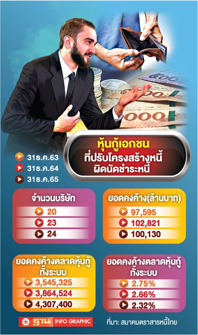 ยอดหุ้นกู้เอกชนไทยที่ปรับโครงสร้างหนี้/ผิดนัดชำระหนี้ คงค้างกว่า 1 แสนล้าน