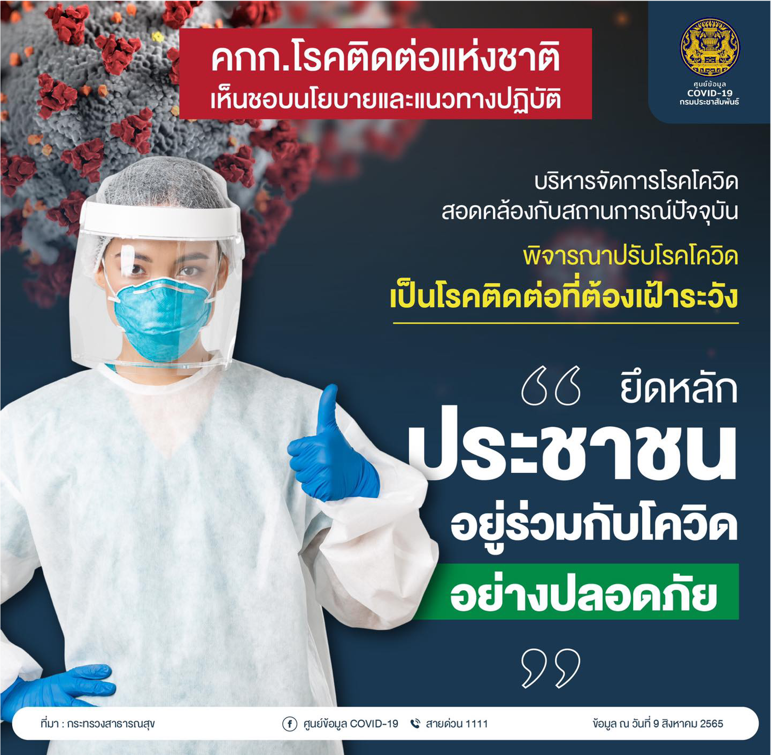 ประกาศโควิด-19 เป็นโรคติดต่อที่ต้องเฝ้าระวัง เริ่ม 1 ต.ค.นี้