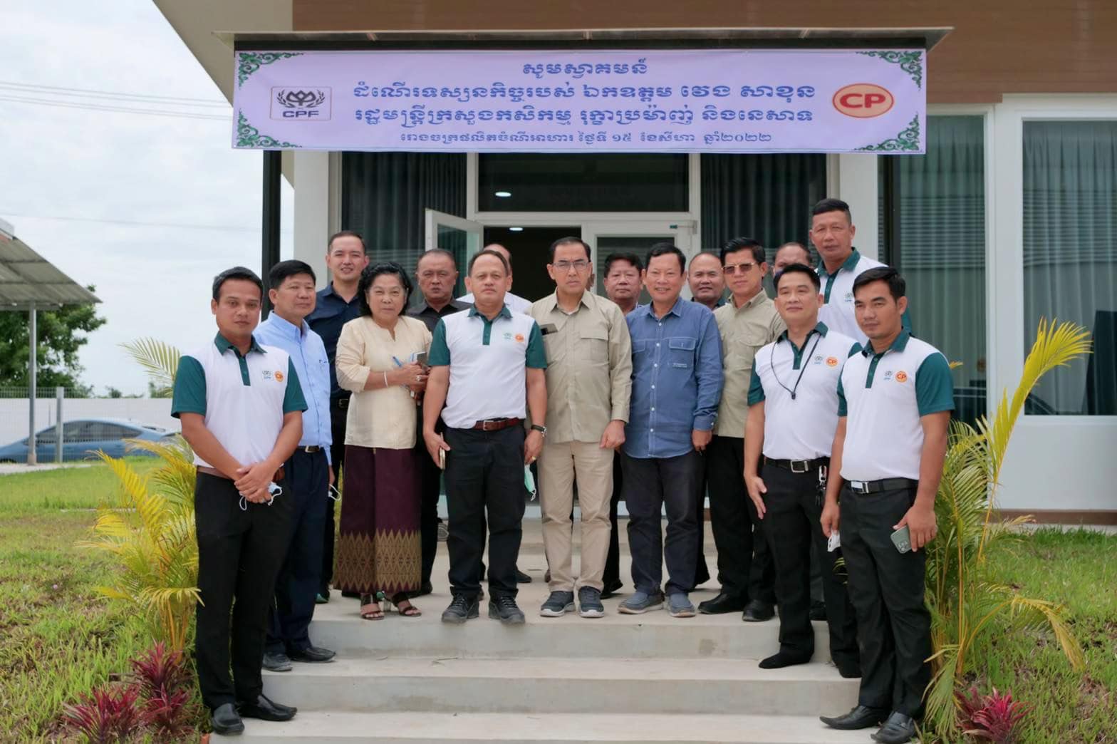 ฯพณฯ เวง สาขน รัฐมนตรีว่าการกระทรวงเกษตรป่าไม้และประมง พร้อมด้วย ฯพณฯ อูสเพีย ผู้ว่าราชการจังหวัดตาแก้ว และผู้แทนรัฐบาลกัมพูชา อธิบดีกรมปศุสัตว์ เกษตรจังหวัดตาแก้ว เข้าเยี่ยมชม ฟาร์มผลิตสุกรขุนและโรงงานอาหาร CP กัมพูชา โดยมี คุณวิทยา เกรียงไกรวิทย์ กรรมการผู้จัดการ และคุณไพทูรย์ วงษ์กตเวทิน รองกรรมการผู้จัดการ CP กัมพูชา ร่วมให้การต้อนรับ