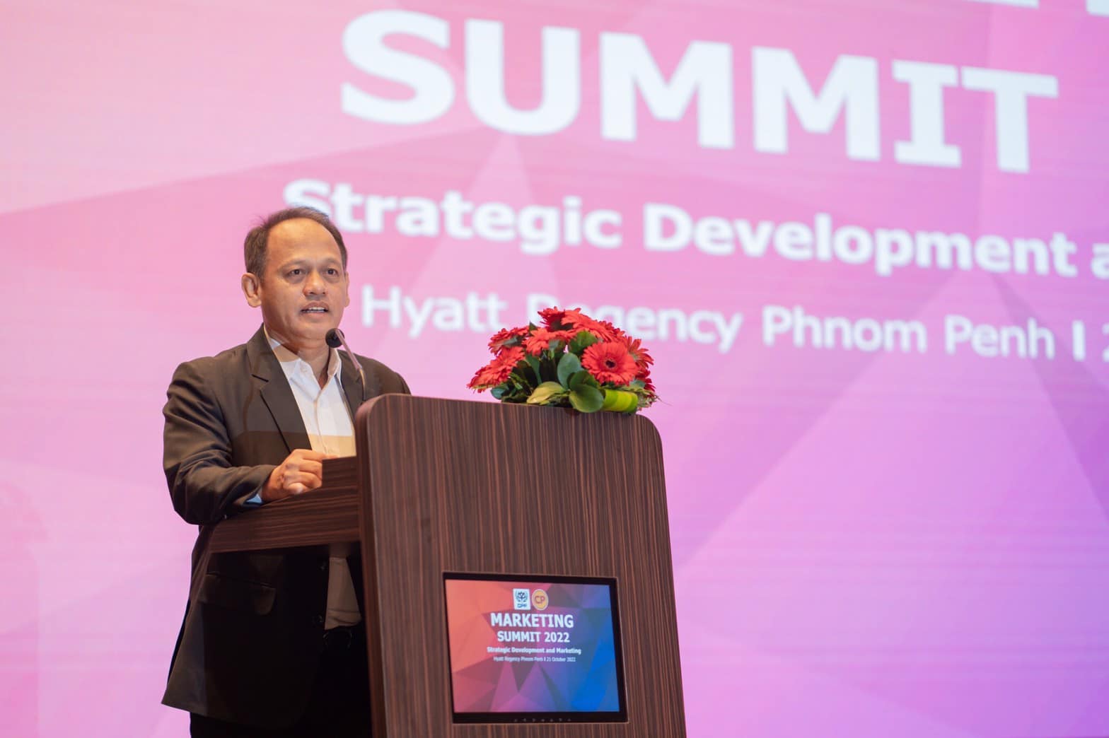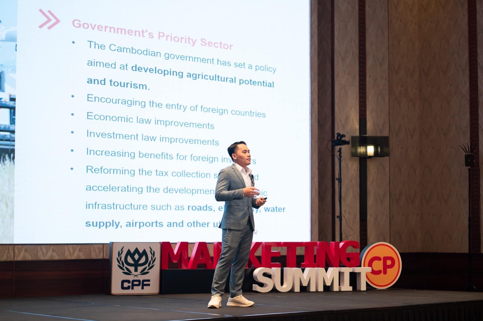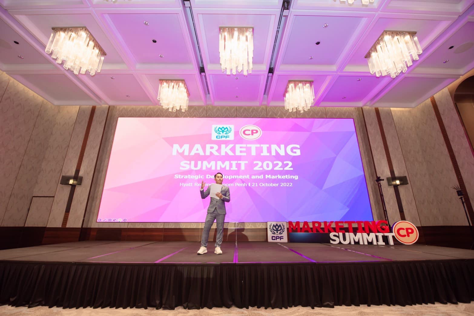 คุณวิทยา เกรียงไกรวิทย์ กรรมการผู้จัดการ CP กัมพูชา และ น.สพ.ภูริช สินวัต รองผู้จัดการทั่วไป สำนักงานพัฒนากลยุทธ์และการตลาด ร่วมเปิดงานสัมมนา “CP Marketing Summit 2022″ จัดขึ้นโดยสำนักงานพัฒนากลยุทธ์และการตลาด เพื่อเป็นการแลกเปลี่ยนวิธีคิดการทำการตลาดของแต่ละธุรกิจเพื่อวางแผนกลยุทธ์ในปี 2023 ภายในงานได้นำเสนอข้อมูลทางการตลาดของธุรกิจ CP กัมพูชา ผ่านนักการตลาดของแต่ละธุรกิจ 12 หัวข้อ ครอบคลุมธุรกิจอาหารสัตว์ ธุรกิจการเลี้ยงสัตว์ และธุรกิจอาหารแปรรูป พร้อมจัดสัมมนาเชิงปฏิบัติการ หัวข้อ “16 Personality” Workshop ค้นหาจุดแข็งในตัวคุณ” เพื่อสร้างอาชีพในอนาคต ณ โรงแรม Hyatt Regency Phnom Penh.