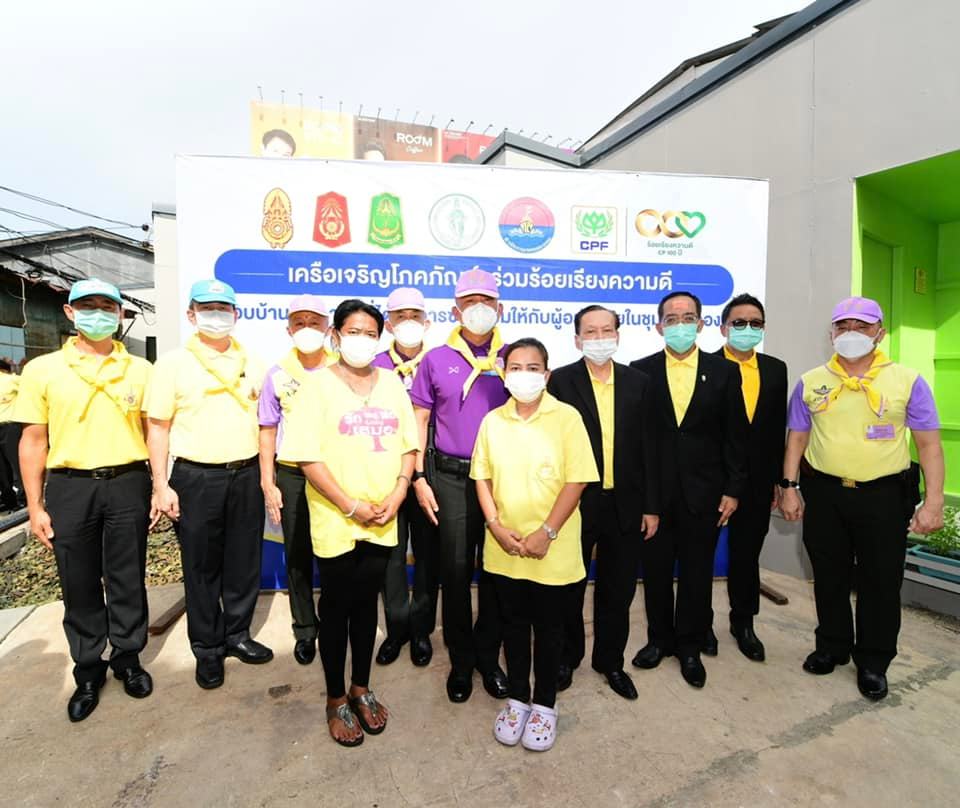 พลโท สุขสรรค์ หนองบัวล่าง แม่ทัพภาคที่ 1 และ คุณพงษ์ วิเศษไพฑูรย์ รองประธานคณะกรรมการบริหาร CPF พร้อมด้วย คุณสมวุฒิ เหราบัตย์ ผู้ช่วยประธานกรรมการเครือซีพี ร่วมส่งมอบบ้านพักที่สร้างแล้วเสร็จ 6 หลัง จากทั้งหมด 47 หลัง ให้แก่ชาวชุมชนคลองเตย ถวายเป็นพระราชกุศล เนื่องในโอกาสวันเฉลิมพระชนมพรรษา สมเด็จพระนางเจ้าฯ พระบรมราชินี วันที่ 3 มิถุนายน 2565 เพื่อยกระดับคุณภาพชีวิตและสร้างสุขอนามัยที่ดีแก่กลุ่มเปราะบาง ภายใต้ “โครงการสร้างและซ่อมแซมบ้านพักให้กับผู้ยากไร้และด้อยโอกาส” ในโครงการที่ 2 ซึ่งดำเนินการโดยกองทัพบก สนับสนุนโดย CPF พร้อมทั้งมอบถุงยังชีพ เครื่องอุปโภคบริโภค สิ่งของจำเป็น รวมถึงชุดปลูกผักสวนครัวจากเจียไต๋ และยาสมุนไพรฟ้าทะลายโจรจากเครือซีพี ตามโครงการ “ซีพี ปันปลูก ฟ้าทะลายโจร” เพื่อให้คนไทยเข้าถึงยาสมุนไพรไทย
