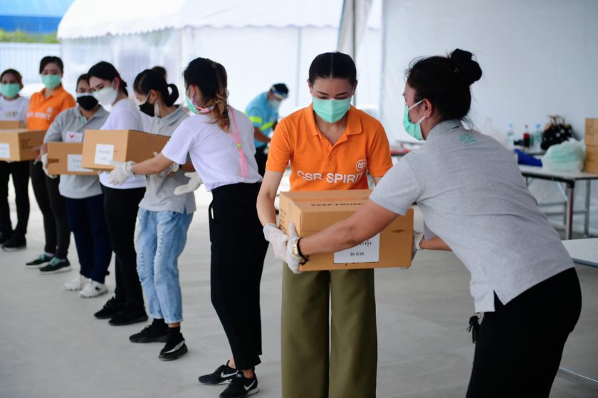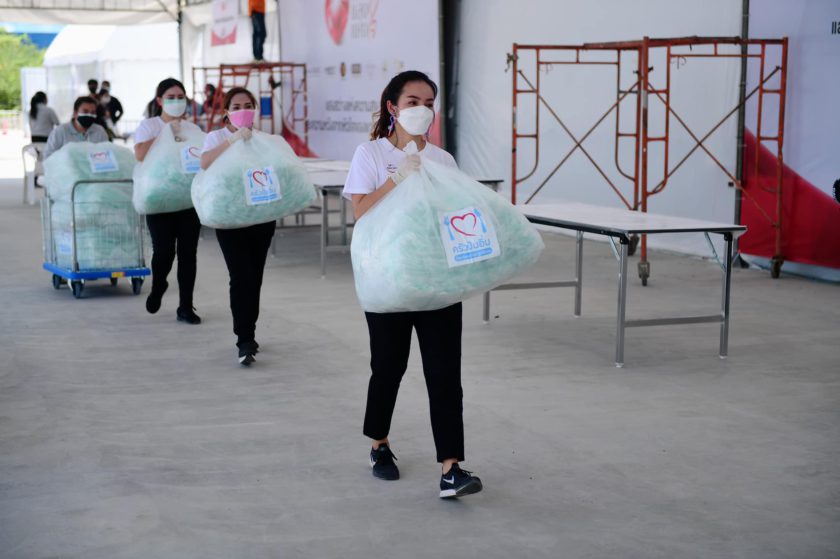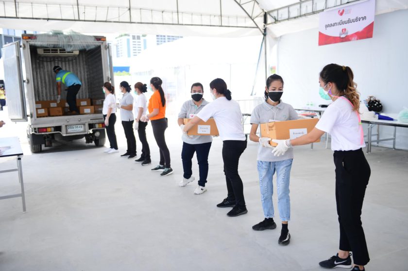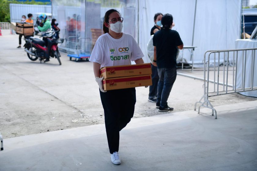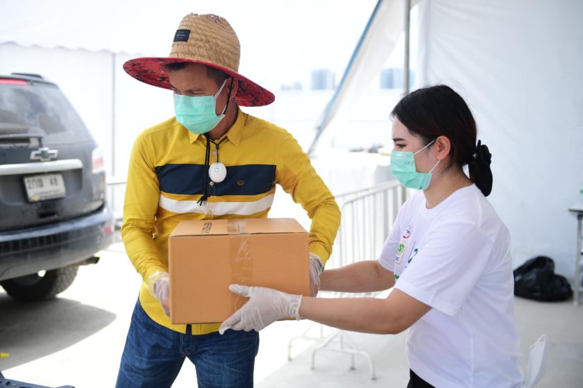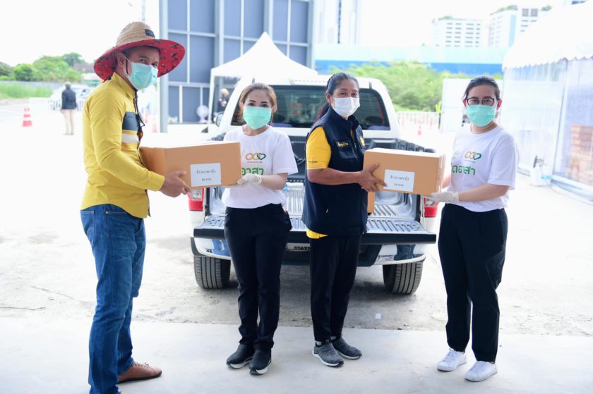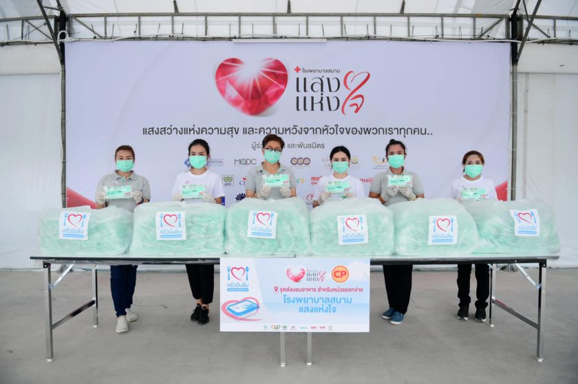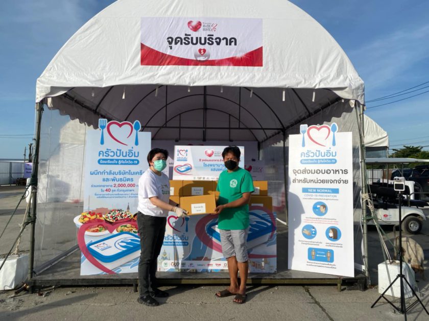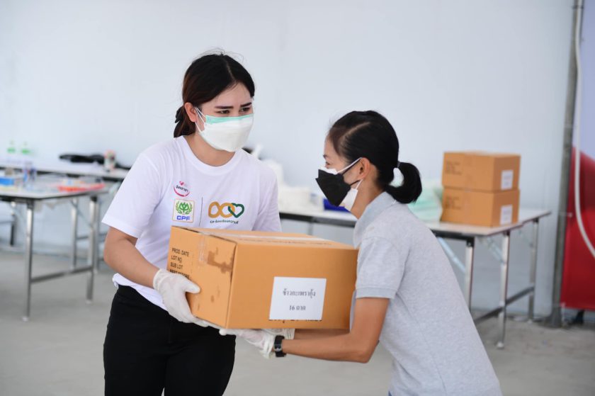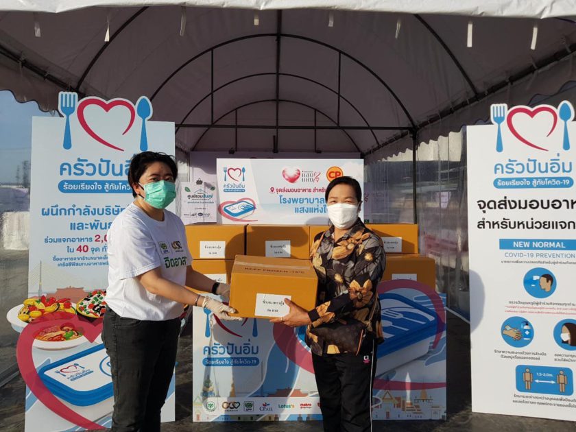 รับอาหารอุ่นร้อนพร้อมทาน เครื่องดื่มเพื่อสุขภาพ กาแฟทรู และหน้ากากอนามัยซีพี ในโครงการ “ครัวปันอิ่ม” จากชาว CP-CPF ซีพี อินเตอร์เทรด จิตอาสา พร้อมเสริมพลังนักรบด่านหน้าและผู้ป่วย รพ.สนามแสงแห่งใจ สู้ภัยโควิด โดยมี คุณสายพิณ ทรัพย์สอน ผู้ใหญ่บ้านหมู่ 10 และคุณไพโรจน์ ผันโพธิ์ ผู้ใหญ่บ้านหมู่ 15 ต.บางแก้ว อ.บางพลี จ.สมุทรปราการ รับมอบ
