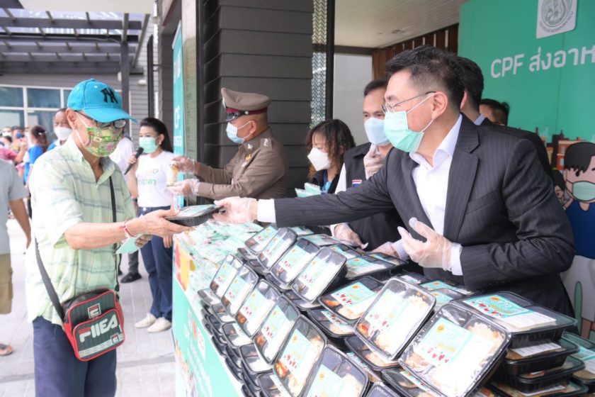 ขณะที่ CEO คุณประสิทธิ์ บุญดวงประเสริฐ กล่าวว่า กิจกรรมในวันนี้เป็นโครงการต่อเนื่องที่เครือ CP-CPF ในช่วงแรกของการแพร่ระบาดของโรคโควิด เป็นการสนับสนุนบุคลากรทางการแพทย์ จากนั้นได้ขยายผลไปสู่ชุมชน โดยผนึกกำลัง กระทรวงเกษตรฯ และพันธมิตรอย่าง การเคหะฯ และสมาคมผู้สื่อข่าวเศรษฐกิจ ร่วมมอบอาหารอุ่นร้อนพร้อมทานหลากหลายเมนู ที่ปรุงสุกสดใหม่ทุกวัน เช่น เมนูข้าวไก่ย่างถ่าน ข้าวผัดไก่เกาหลี เครื่องดื่มเพื่อสุขภาพ และหน้ากากอนามัย ให้แก่ประชาชนที่อาศัยอยู่โดยรอบบริเวณนี้ ซีพีเอฟ มีความยินดีเป็นอย่างยิ่งในการช่วยเหลือสังคมตามดำริของประธานอาวุโสธนินท์ เจียรวนนท์ ภายใต้หลักปรัชญา 3 ประโยชน์ ไม่ว่าจะอยู่ประเทศไหนเราต้องช่วยประเทศชาติ สังคม และประชาชนในประเทศนั้นๆ ขอขอบคุณทุกหน่วยงานที่มาร่วมกิจกรรมดีๆ ในครั้งนี้ หวังว่าจะช่วยบรรเทาทุกข์และเยียวยาจิตใจ เป็นมื้อสำคัญให้ทุกคนได้อิ่มอร่อย มีความสุข แรงกายและกำลังใจฝ่าวิกฤตครั้งนี้ไปด้วยกัน