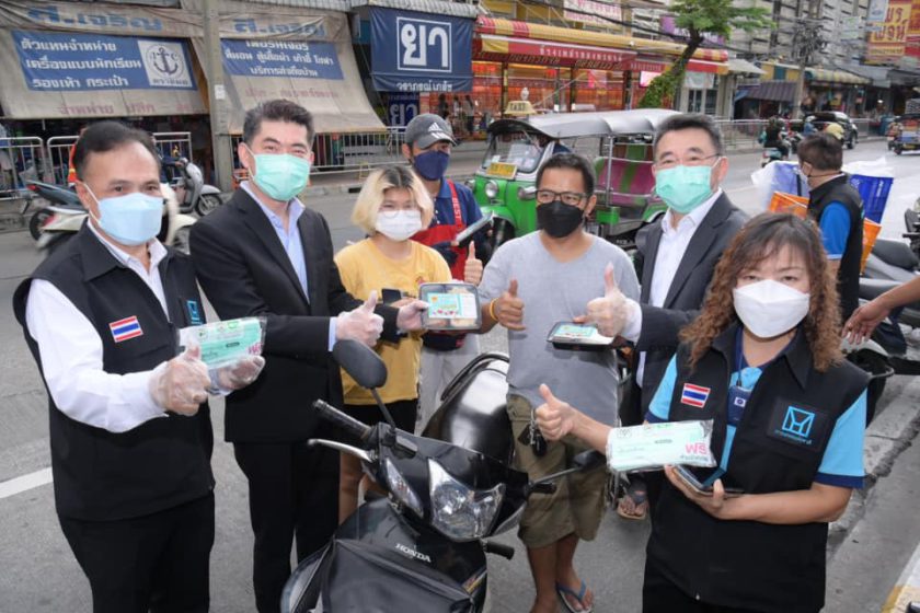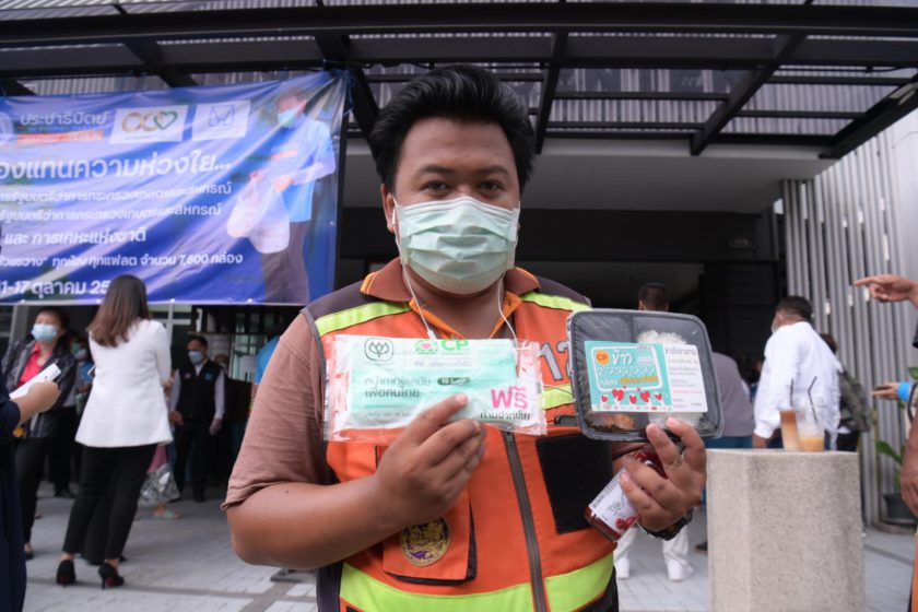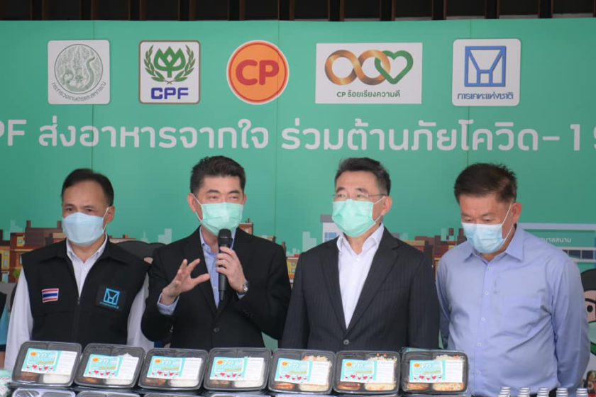 กระทรวงเกษตรฯ การเคหะแห่งชาติ สน.ห้วยขวาง สมาคมผู้สื่อข่าวเศรษฐกิจ CP-CPF ผนึกกำลัง นำข้าวกล่องอุ่นร้อนพร้อมทาน เครื่องดื่มวิตามิน และหน้ากากอนามัย ภายใต้โครงการ “CPF ส่งอาหารจากใจ ร่วมต้านภัยโควิด-19” เพื่อบรรเทาความเดือดร้อนแก่ชาวดินแดงและชาวห้วยขวางจากสถานการณ์โควิด และช่วยแบ่งเบาภาครัฐในการจัดเตรียมอาหารให้ผู้กักตัวที่บ้าน (Home Isolation) เพื่อให้เข้าถึงอาหารคุณภาพปลอดภัยอย่างทั่วถึง โดยมี คุณธนา ชีรวินิจ เลขานุการ รมว.เกษตรฯ พร้อมด้วย คุณเทพฤทธิ์ ฤทธิณรงค์ ผู้ช่วยผู้ว่าการเคหะแห่งชาติ พ.ต.ต.นิทัศน์ ขอนทอง สารวัตรป้องกันปราบปราม สน.ห้วยขวาง คุณวพิมพ์รภัส ศิริไพรวัน นายกสมาคมผู้สื่อข่าวเศรษฐกิจ และ CEO คุณประสิทธิ์ บุญดวงประเสริฐ ร่วมมอบแก่ คุณนวการ ขอนศรี ประธานคณะกรรมการสภาเคหะชุมชนห้วยขวาง และผู้นำชุมชน
