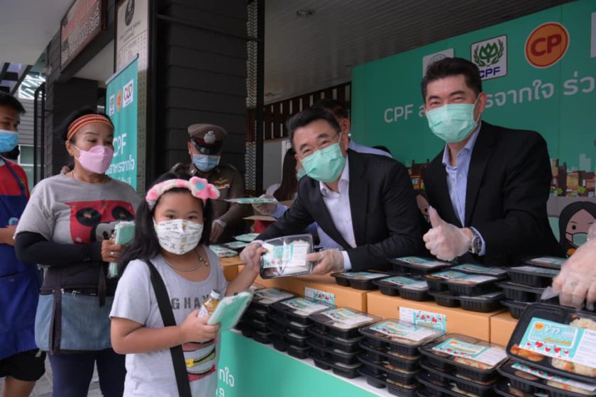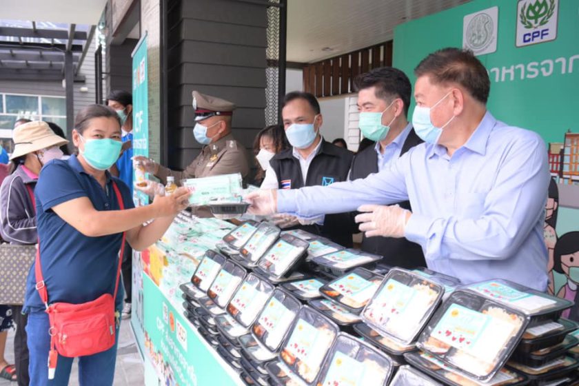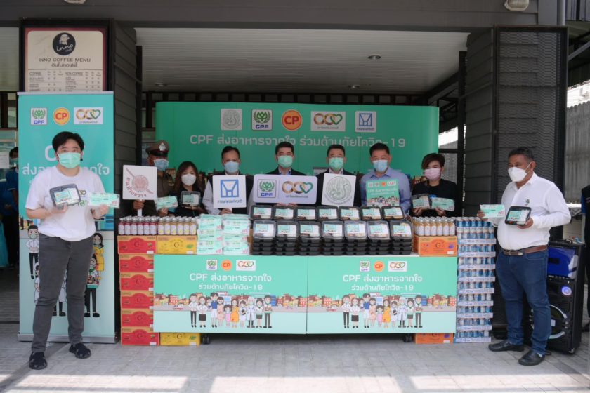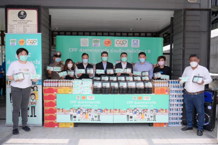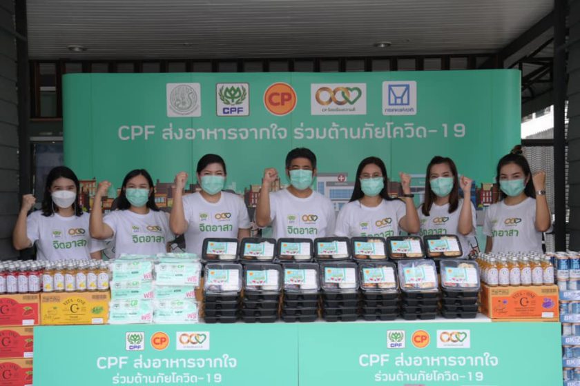 CPF ริเริ่มและดำเนินโครงการ “CPF ส่งอาหารจากใจ ร่วมต้านภัยโควิด-19” มาตั้งแต่ปี 2563 จนถึงปัจจุบัน ตามนโยบายเครือเจริญโภคภัณฑ์ ภายใต้โครงการ “ซีพีร้อยเรียงใจ สู้ภัยโควิด-19” นับจากวันแรก…ถึงวันนี้ CPF มอบอาหารพร้อมทานเพื่อบุคลากรทางการแพทย์และพี่น้องคนไทยแล้วหลายล้านแพ็ค รวมถึงน้ำดื่มและเครื่องดื่มเพื่อสุขภาพหลายล้านขวด ตลอดจนวัตถุดิบอาหารสดและเครื่องปรุงรส สำหรับนำไปปรุงอาหาร แก่โรงพยาบาลหลัก โรงพยาบาลสนาม กลุ่มเปราะบาง ศูนย์ฉีดวัคซีน จุดตรวจโควิดเชิงรุก ศูนย์พักคอย และหน่วยงานต่างๆ มากกว่า 500 แห่งทั่วประเทศ สะท้อนความมุ่งมั่นของบริษัทฯ ร่วมเคียงข้างคนไทยสู้ภัยโควิดไปด้วยกัน