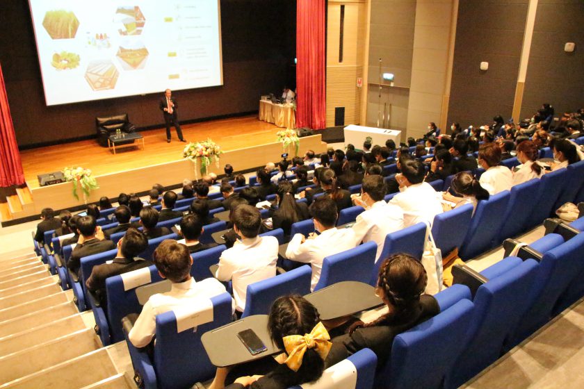 คุณขุนศรี ทองย้อย ได้แบ่งปัน Journey Line ประสบการณ์ในการทำงานกับเครือเจริญโภคภัณฑ์ พร้อมข้อคิดในการทำงาน ชี้ให้เห็นถึงโอกาสและศักยภาพของนักศึกษาคณะนวัตกรรมการจัดการเกษตร โดยกล่าวว่า “น้องๆ ทุกคนต้องมีความฝัน ฝันให้ไกล แล้วต้องไปให้ถึง ความฝันคือ วิสัยทัศน์ของเรา ผู้นำที่ดีต้องเป็นคนที่มีวิสัยทัศน์ ผู้นำที่ดีจะต้องเป็นคนที่มองการณ์ไกล และการที่จะเป็นผู้นำที่ดีนั้น สิ่งที่สำคัญไปกว่าเรื่องของการมีวิสัยทัศน์ ก็คือ การทำวิสัยทัศน์นั้นให้เกิดขึ้นในทางปฏิบัติให้ได้”
